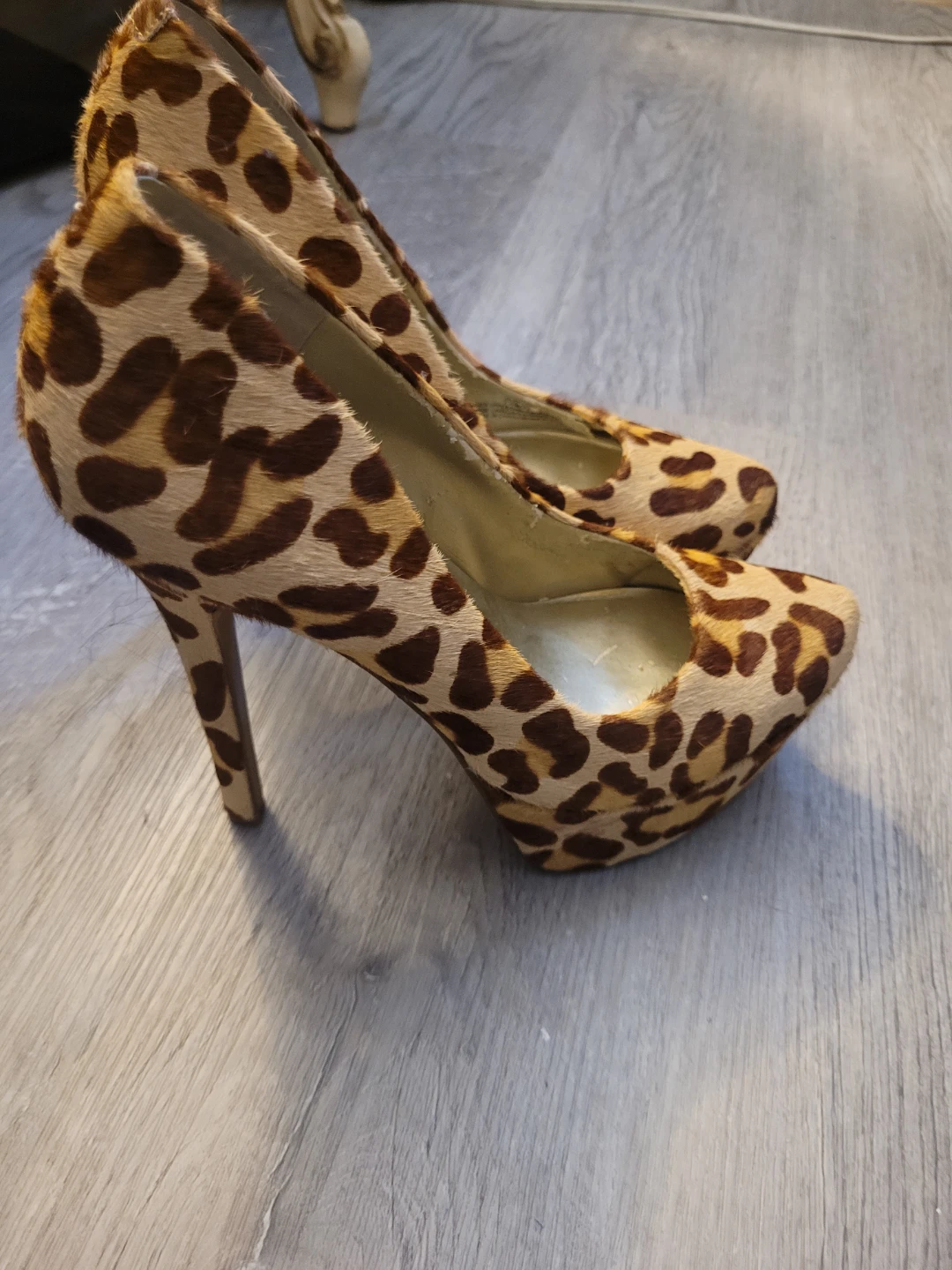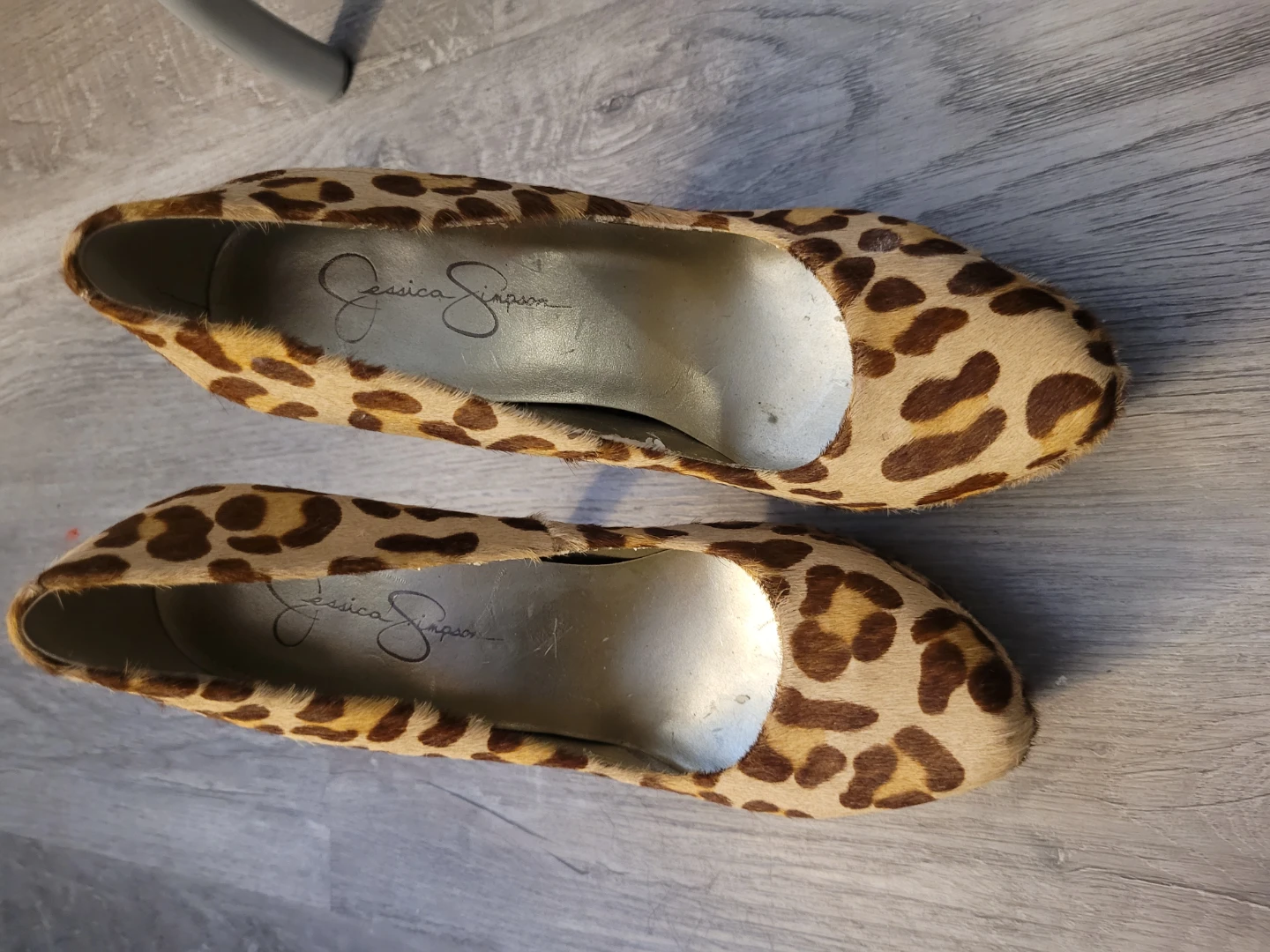 Selling a pair of Jessica Simpson heels in a fun leopard print! They're a size 7.5, fuzzy texture, and would be a great addition to your wardrobe