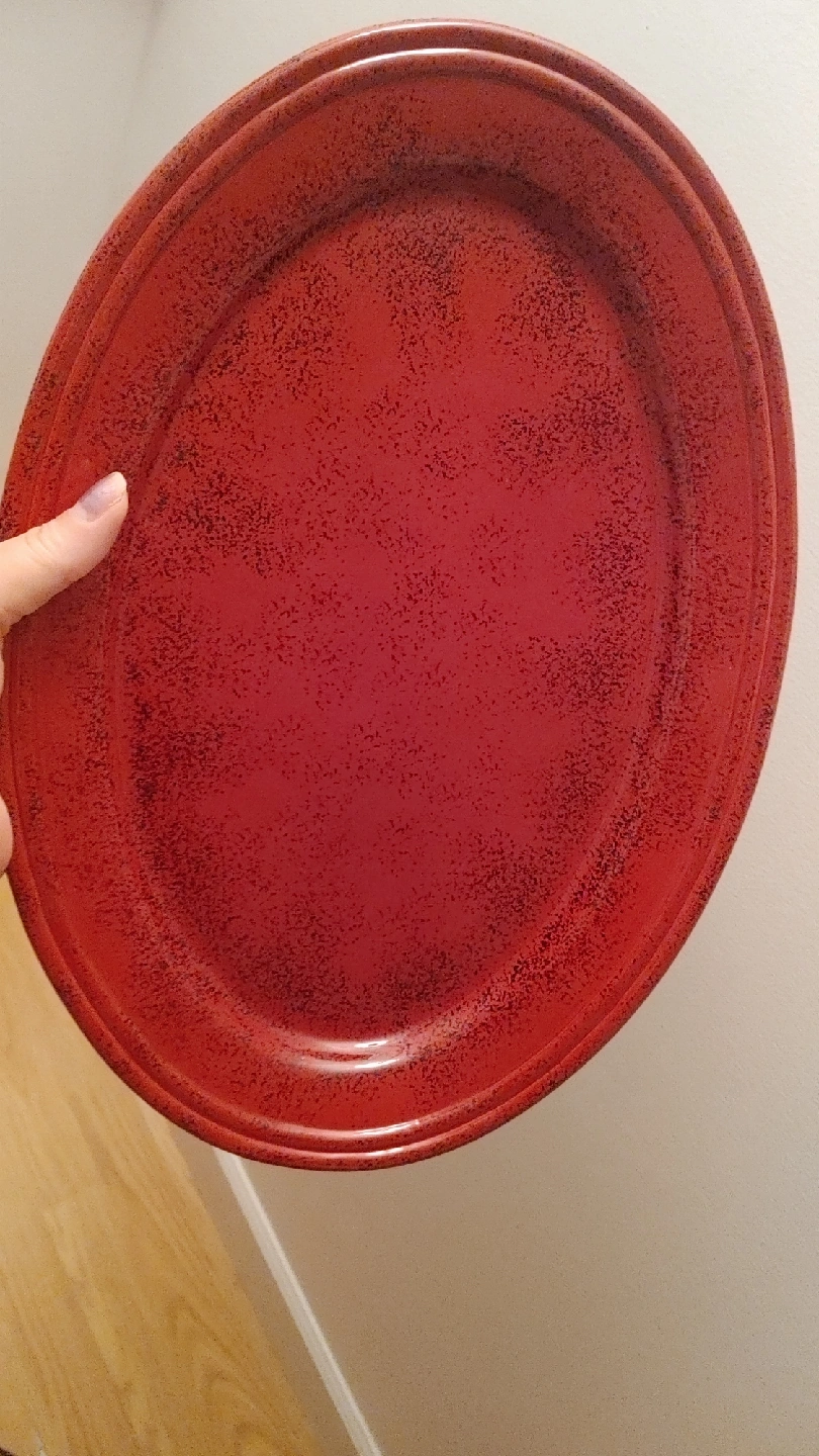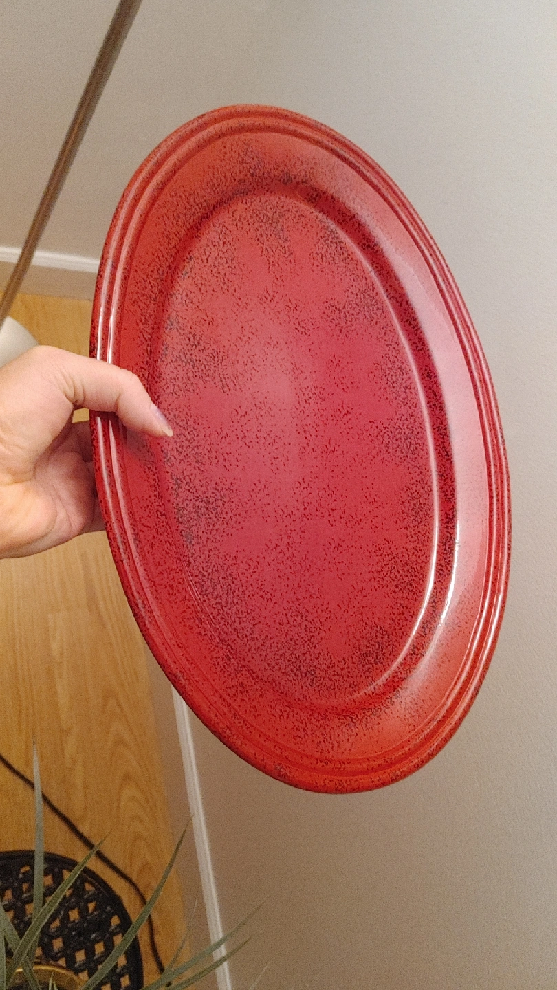 63Selling a red speckled oval platter that's both microwave and dishwasher safe. It's in great shape and ready for your next dinner party or family meal! dimension 15.5" x 11"