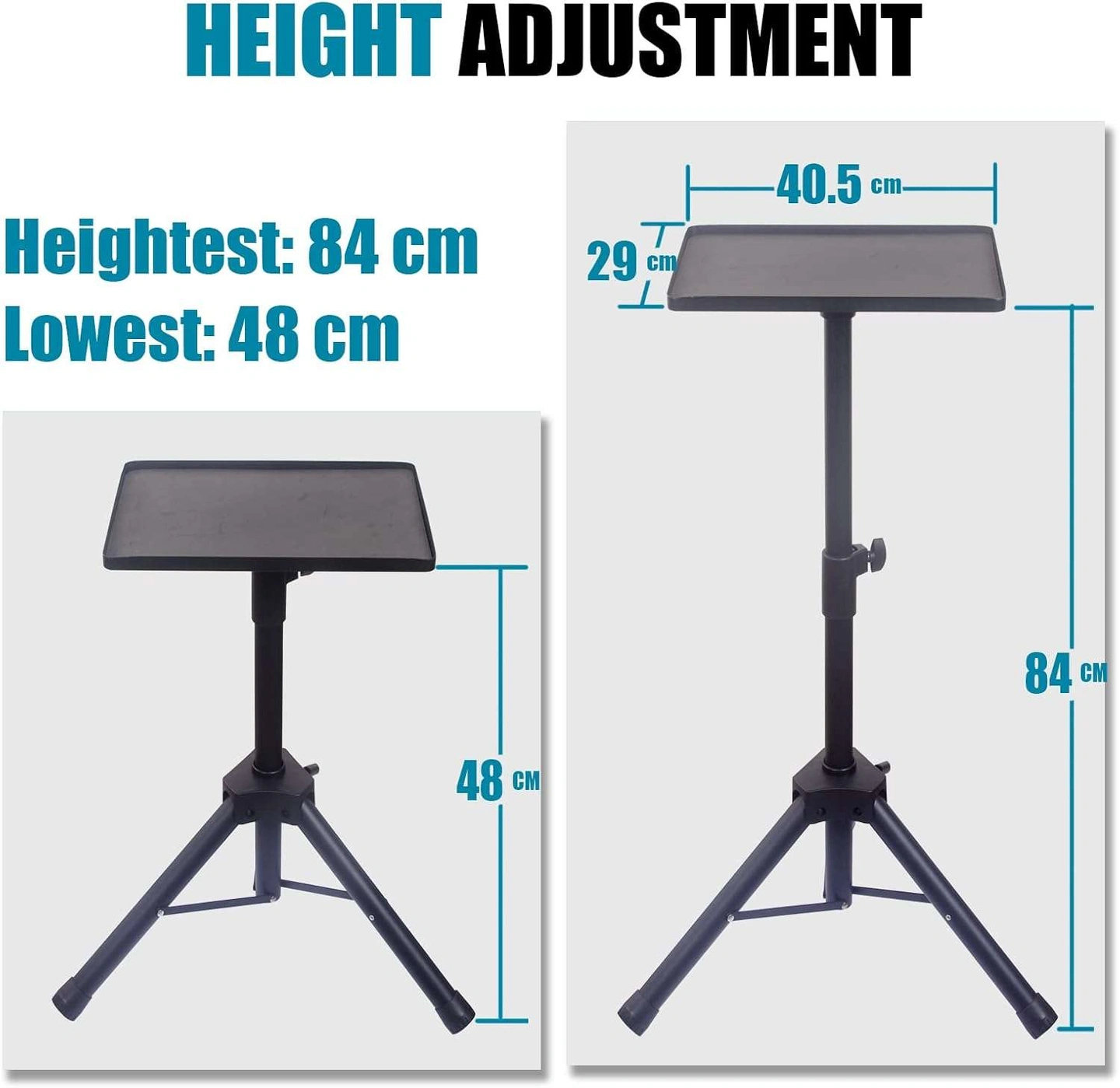 Sturdy and versatile GLEAM Projector Stand ideal for laptops, projectors, DJ setups, music gear, or presentations. Built with a strong powder-coated metal frame and a large, stable tray — perfect for home, office, or event use.