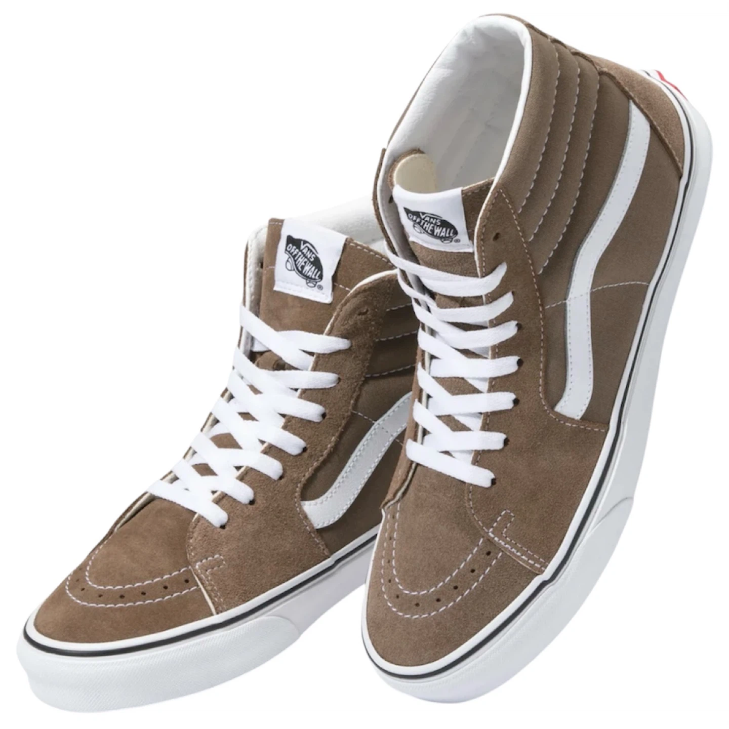 This supremely cool pair of Vans sneakers showcases the iconic sidestripe on a fresh high top silhouette. Made with sturdy suede and canvas uppers, this lace-up shoe also includes re-enforced toe caps, supportive padded collars, and signature rubber waffle outsoles.