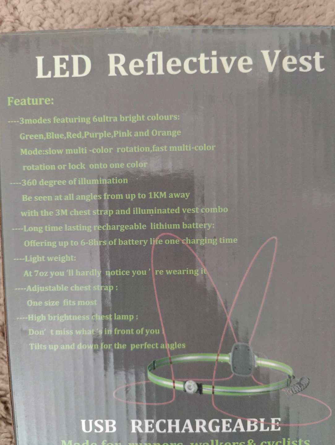 21This brand new LED reflective vest is perfect for runners, walkers, and cyclists! It's USB rechargeable and features ultra-bright colors in 3 modes: Green, Blue, Red, Purple, Pink, and Orange. The vest offers 360-degree illumination and can be seen from up to 1KM away.