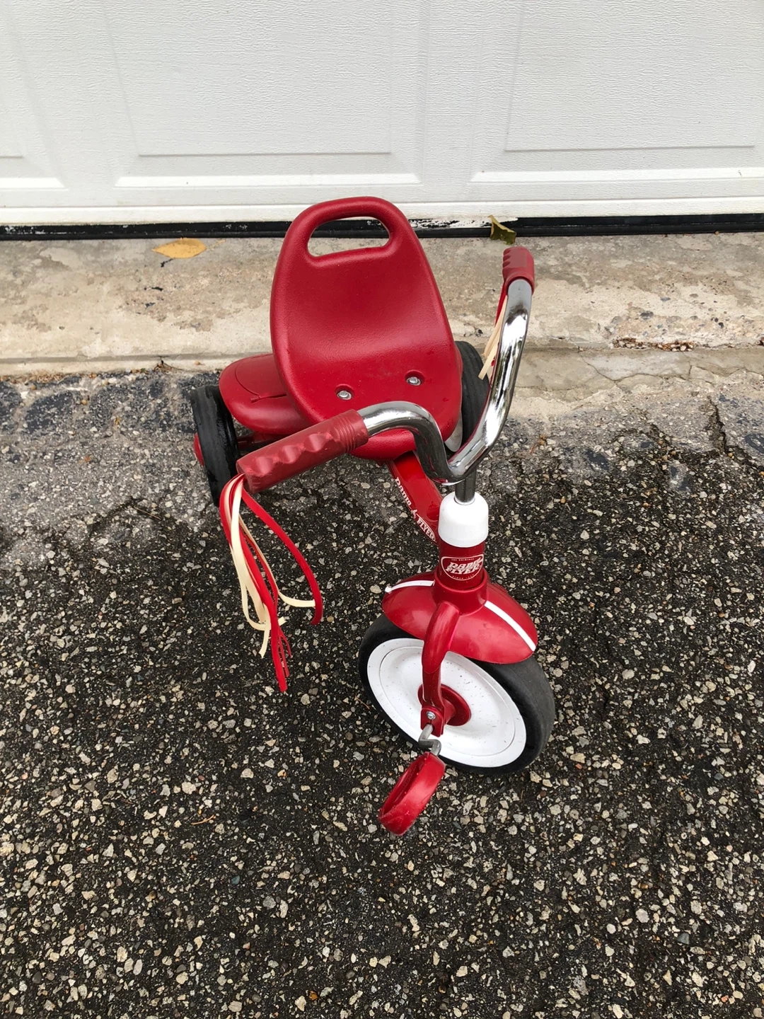 Selling a classic red Radio Flyer tricycle! It's in great shape and ready for a new rider. Perfect for kids learning to ride and explore. It's a fun way to get some exercise and enjoy the outdoors. All sales are final