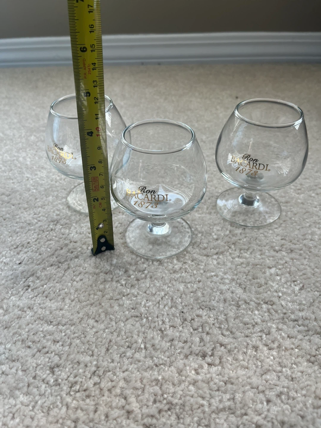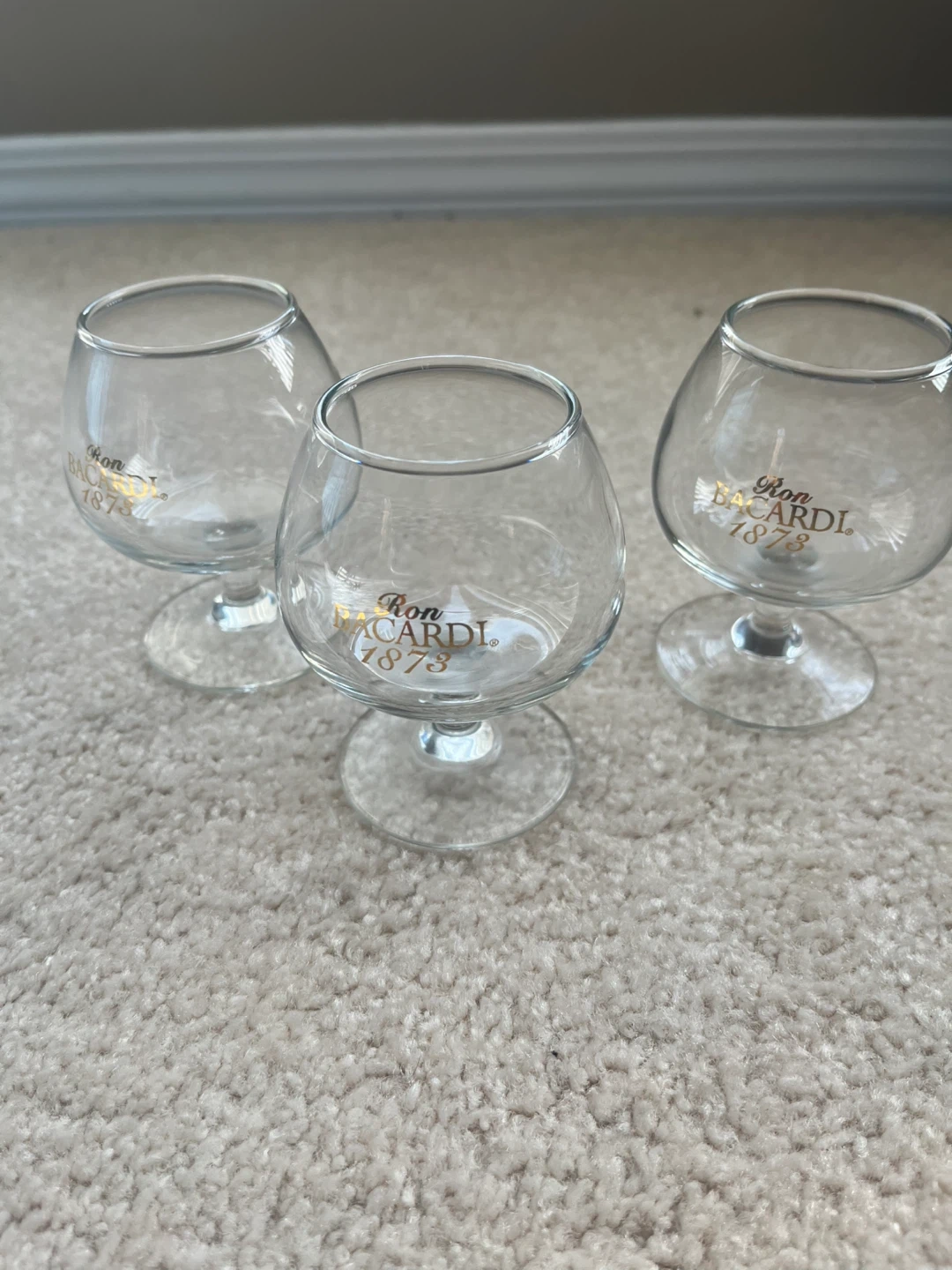 Selling three Ron BACARDI 1873 brandy glasses! They are in great condition and ready for your favourite drink. The glasses are about 4 inches tall.