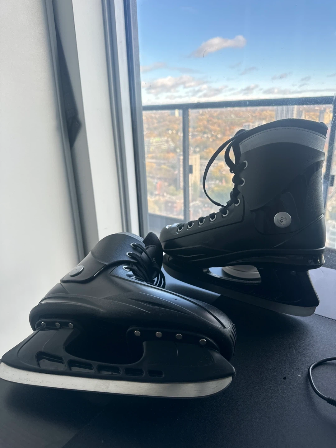 Selling a pair of Oxelo Fit 50 ice skates in black. They are a size 6.5 US (40 EU). These skates are in great condition and ready for some fun on the ice!