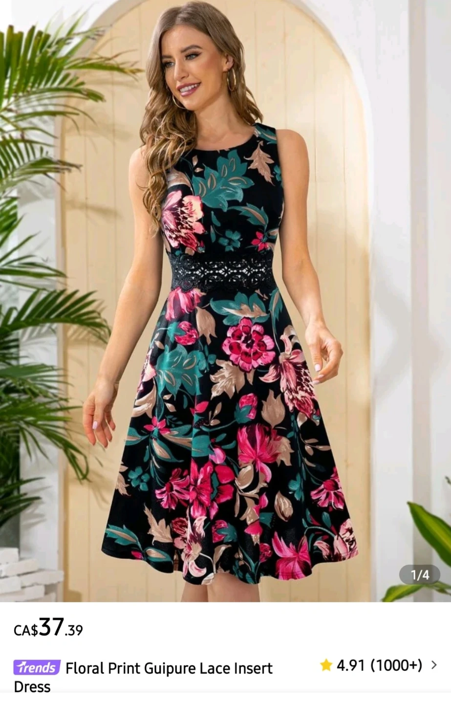 This Trends dress features a lovely floral print and a guipure lace insert at the waist, it's in great condition!