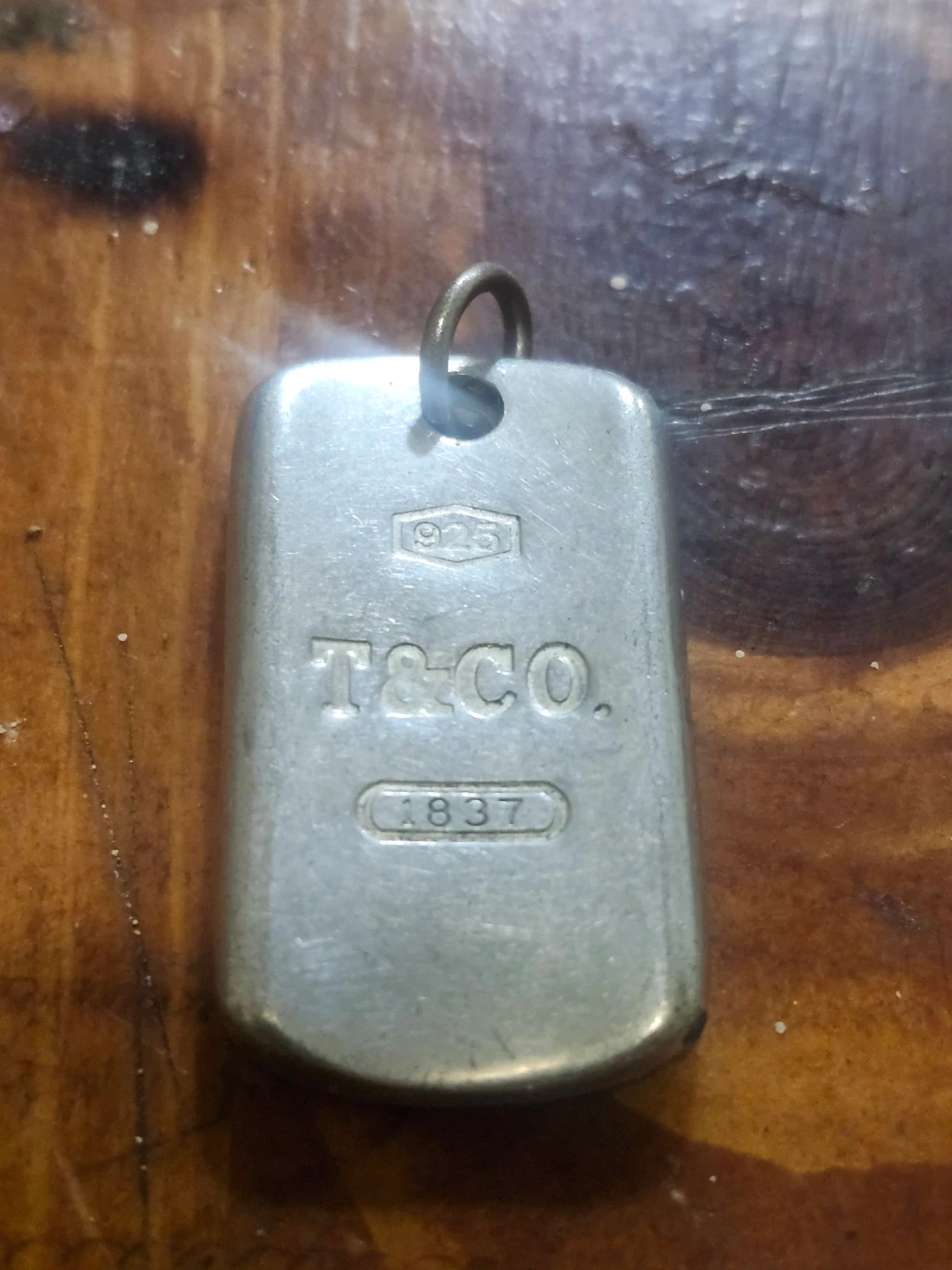 Selling a Tiffany & Co. 1837 dog tag pendant. It's a classic piece from their collection. The pendant is made of 925 sterling silver and has the T&CO. and 1837 engravings.