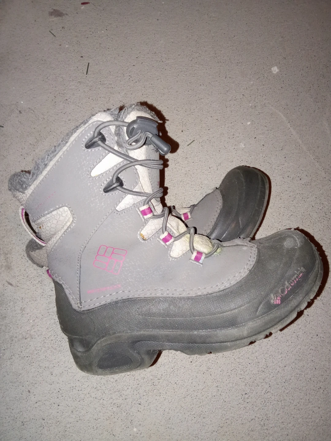 These boots are perfect for keeping little feet warm and dry during the winter months. They feature a grey and white design with pink accents, making them stylish as well as functional. Great for playing in the snow or just walking to school!