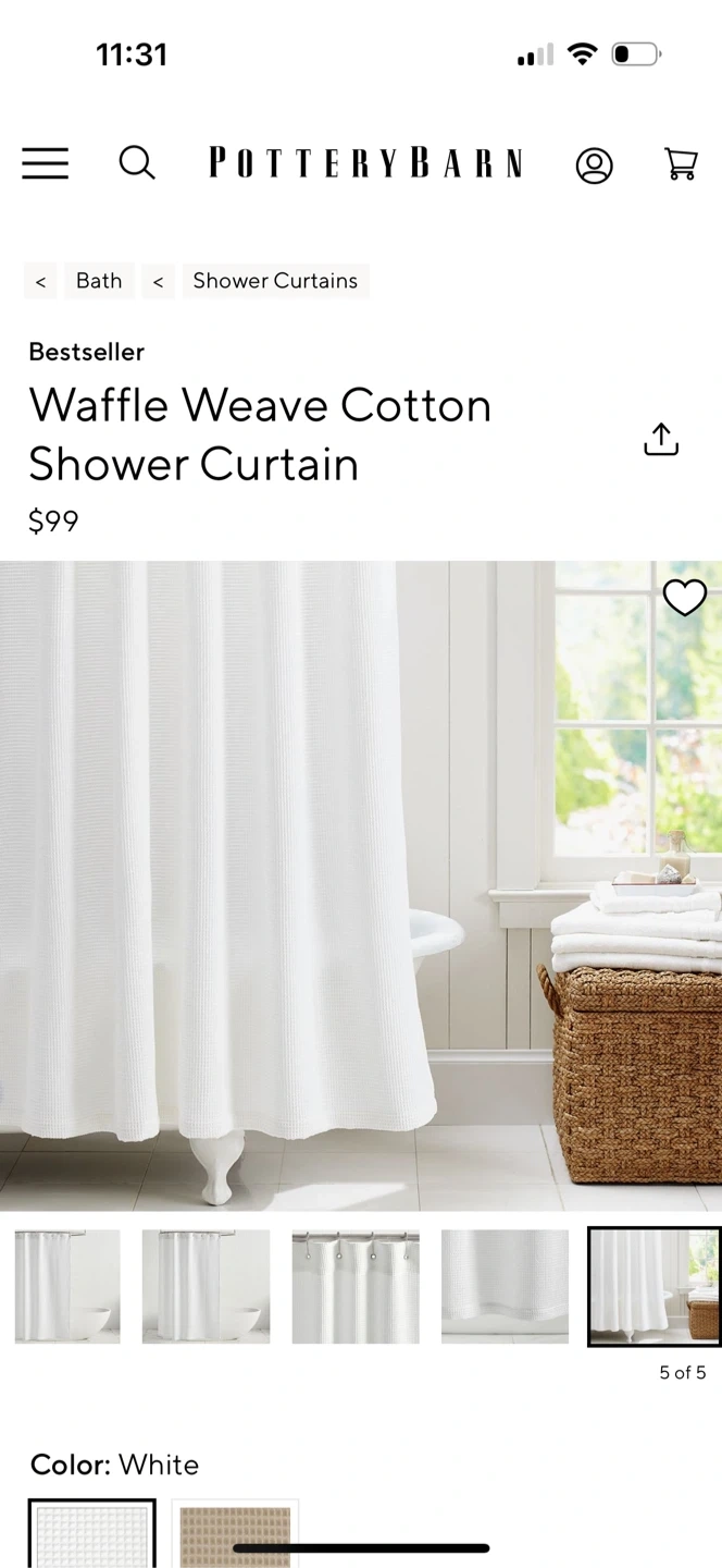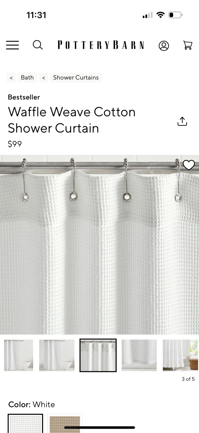 Add a touch of texture to your bathroom with this Pottery Barn shower curtain! It features a classic waffle weave pattern in a clean white color.