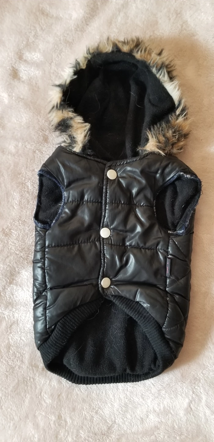 Keep your furry friend warm and stylish with this cute Bebe black puffer vest! It features a hood with faux fur trim and a quilted design. Perfect for small dogs.