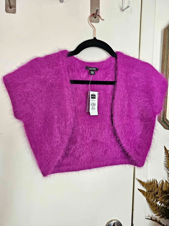 New with Tags Y2K Angora Shrug Bolero Purple Fuzzy Cardigan