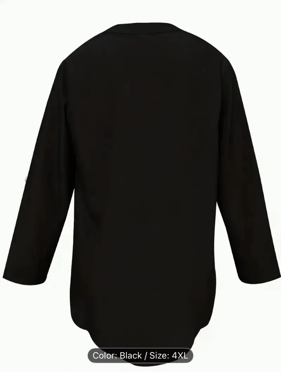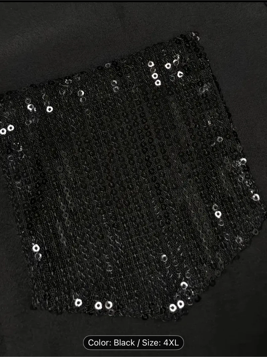 This is a stylish black blouse with sequin detailing. It's a size 4XL and would make a great addition to your wardrobe!