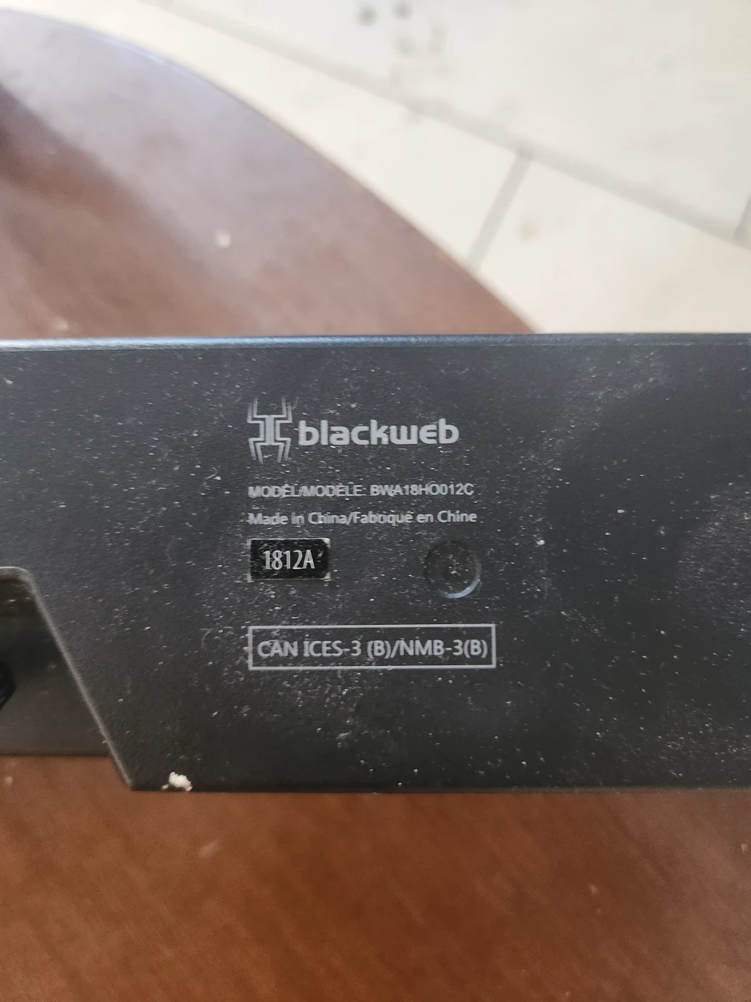 78Selling a Blackweb soundbar, model BWA18HO012C. It comes with its AC adapter, model NBS30D150200HU. Great for enhancing your audio experience!
