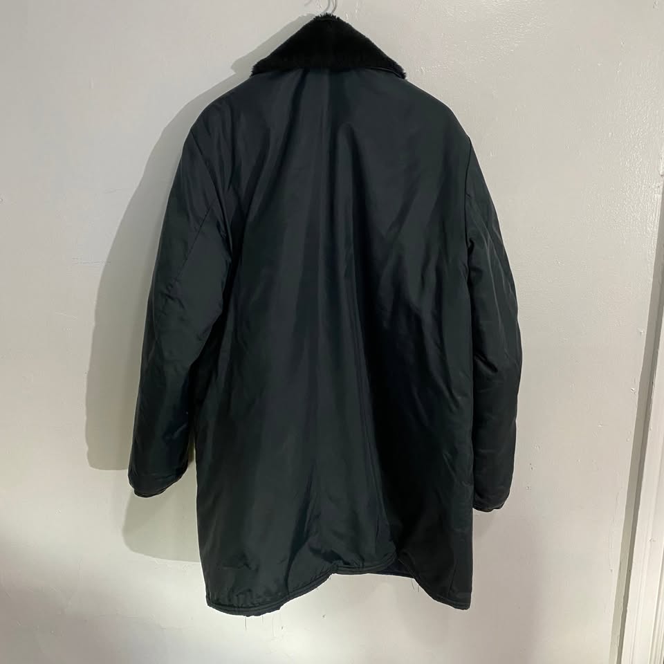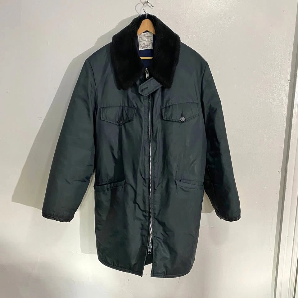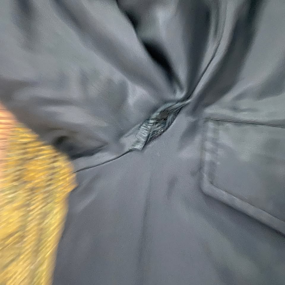 One armpit has a small tear. Otherwise no major flaws and in good condition. On the lighter side, so its good for layering in colder months. I liked to wear it oversized. Tagged size 44, guessing this is a men's XL? Check measurements below.