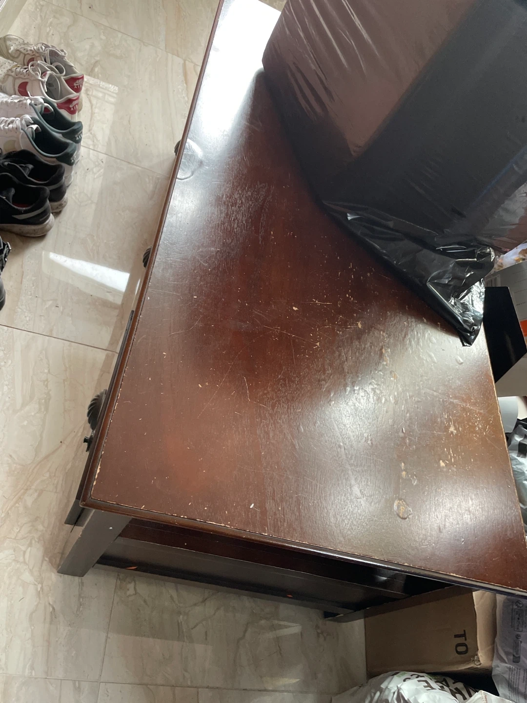 Giving away a wooden coffee table! It's a nice brown colour and would look great in any living room. There are some signs of use, but it's still in good condition.