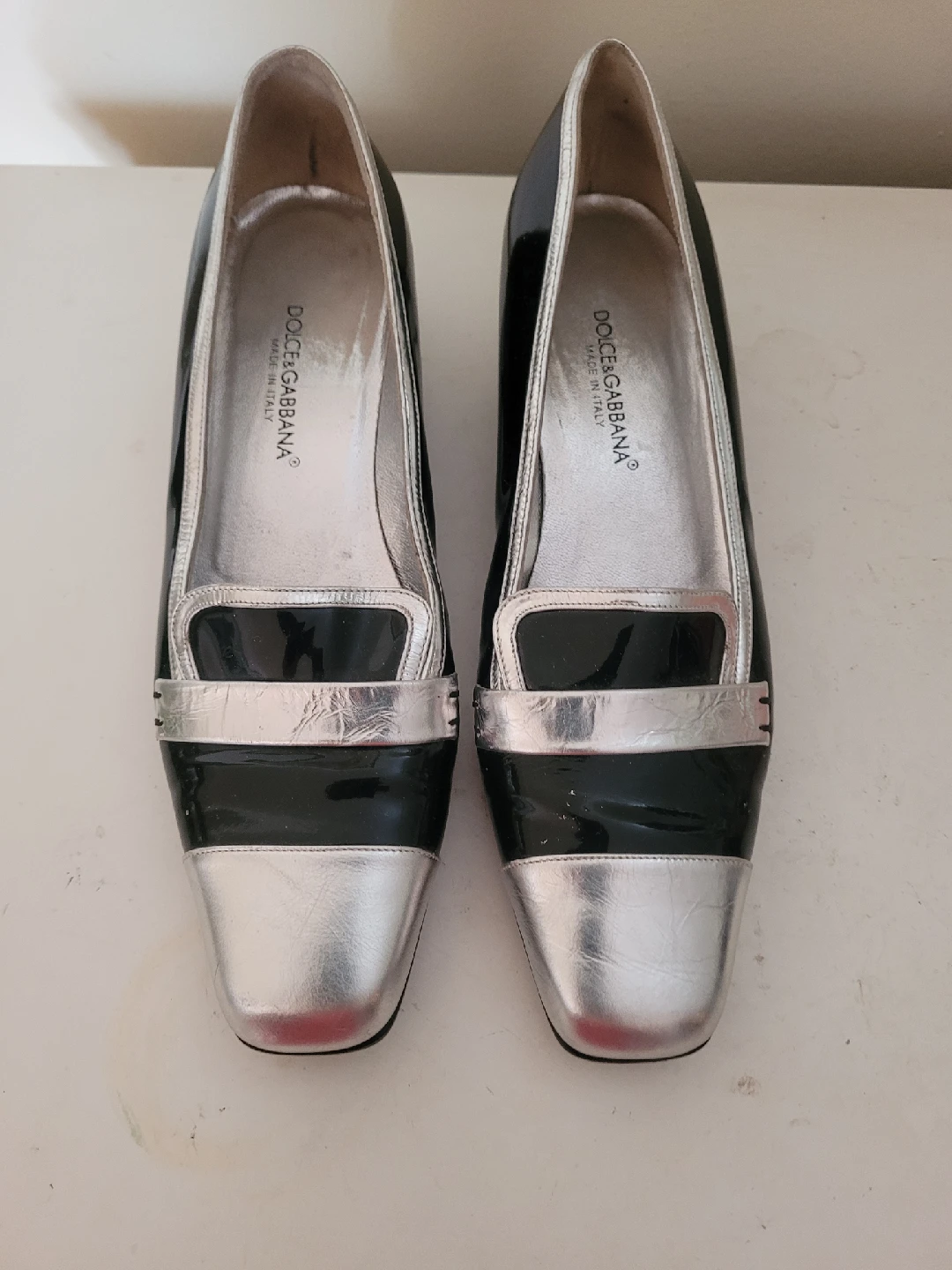 Elevate your style with these chic Dolce & Gabbana heels, size 37, crafted in Italy with a sleek black and silver design. Perfect for adding a touch of luxury to any outfit.