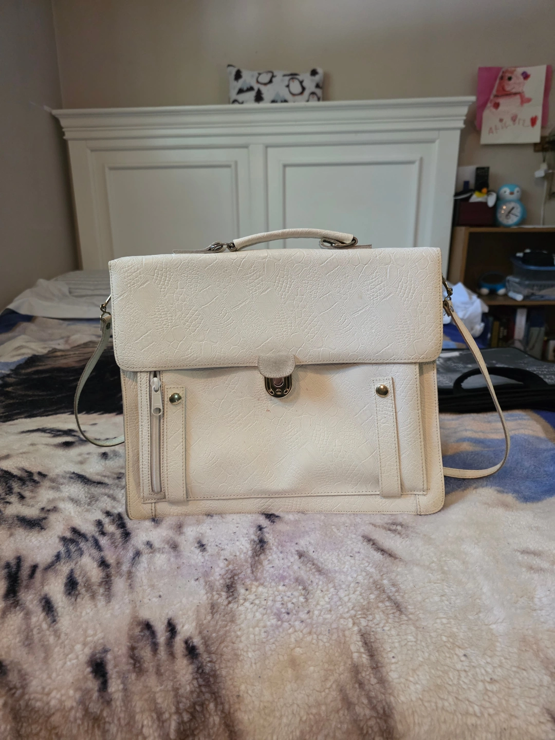 Selling a lovely white shoulder bag! It has a unique textured pattern and a stylish design. Perfect for adding a touch of elegance to any outfit.