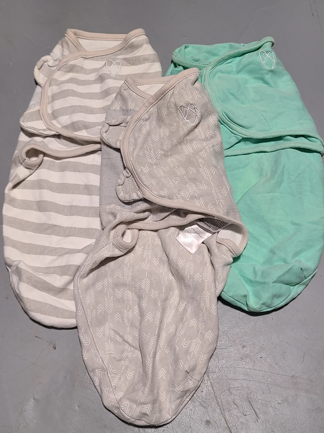 Selling a pack of three SwaddleMe swaddles! They're in great condition and ready for a new little one. These are perfect for keeping your baby snug and secure during sleep. Colours are for boy, girl, and gender-neutral.