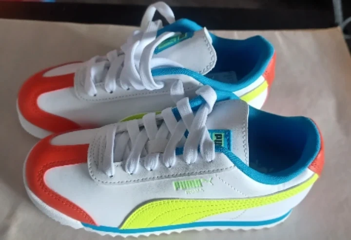 15These Puma Roma child sneakers are in great condition and ready for a new home! They're a size 13C and feature a fun colour scheme. Perfect for your little one!