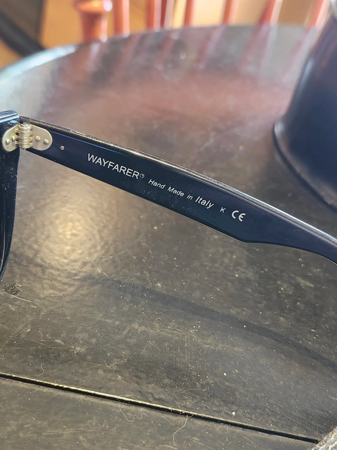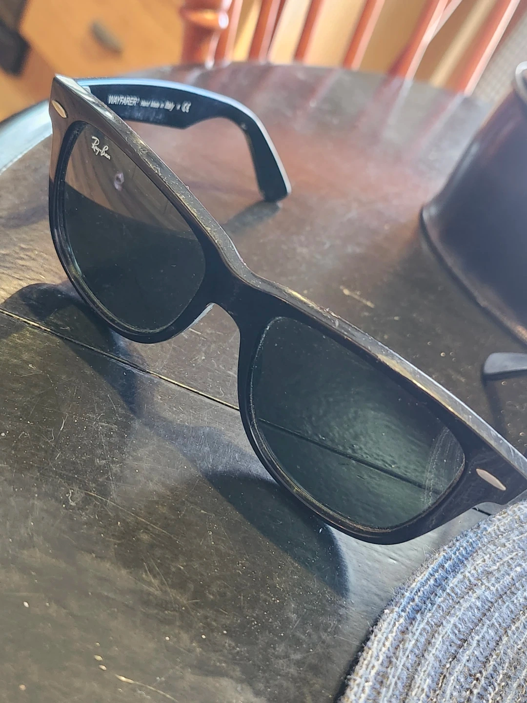 Selling a pair of classic Ray-Ban Wayfarer sunglasses! They're in great shape and come with the original case. The model number is RB2140 901 and the size is 54[]18. These sunglasses are handmade in Italy and offer 100% UV protection