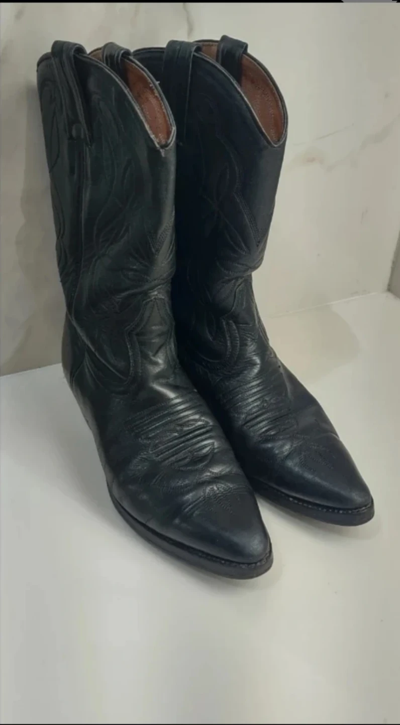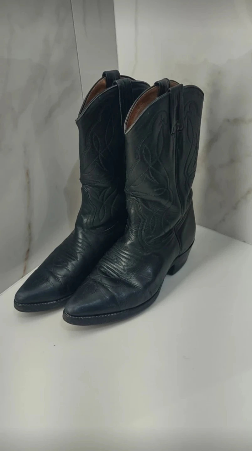 Selling a pair of classic black leather cowboy boots. They're in good condition and ready for a new home! Perfect for adding a bit of western flair to your wardrobe.