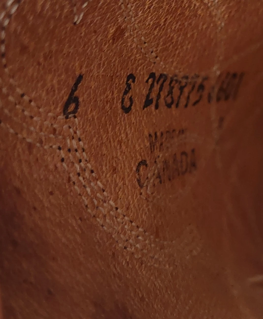 The size is 8, but 7.5 also fits comfortably.They look much more stylish when worn. These boots are in perfect condition.