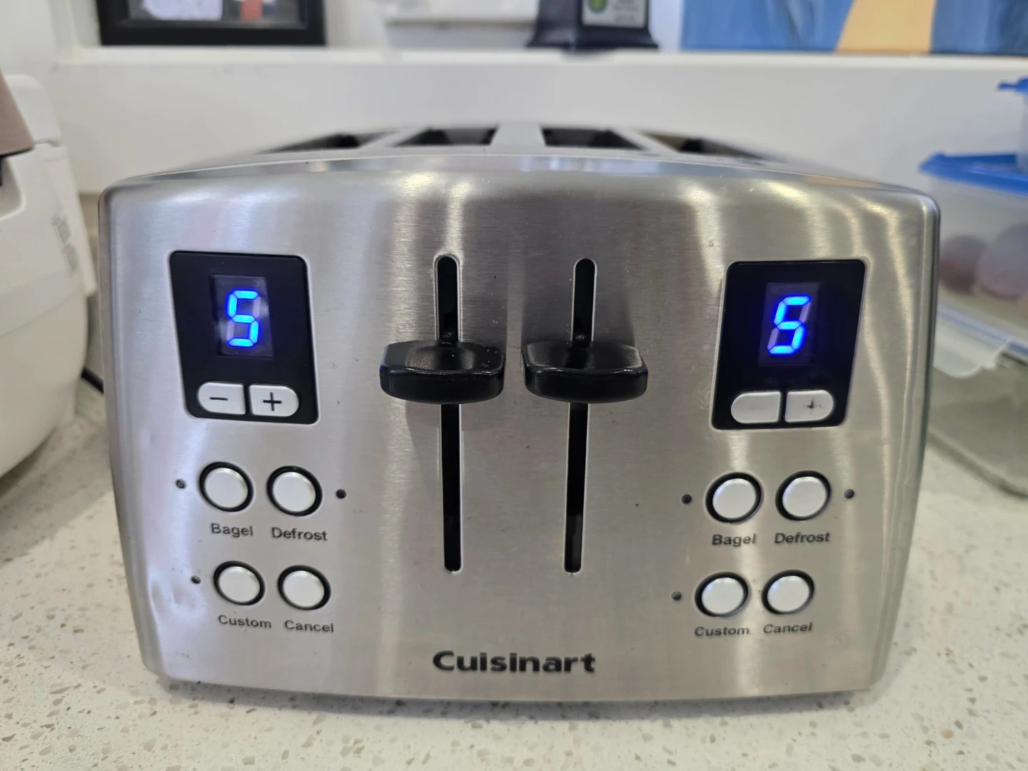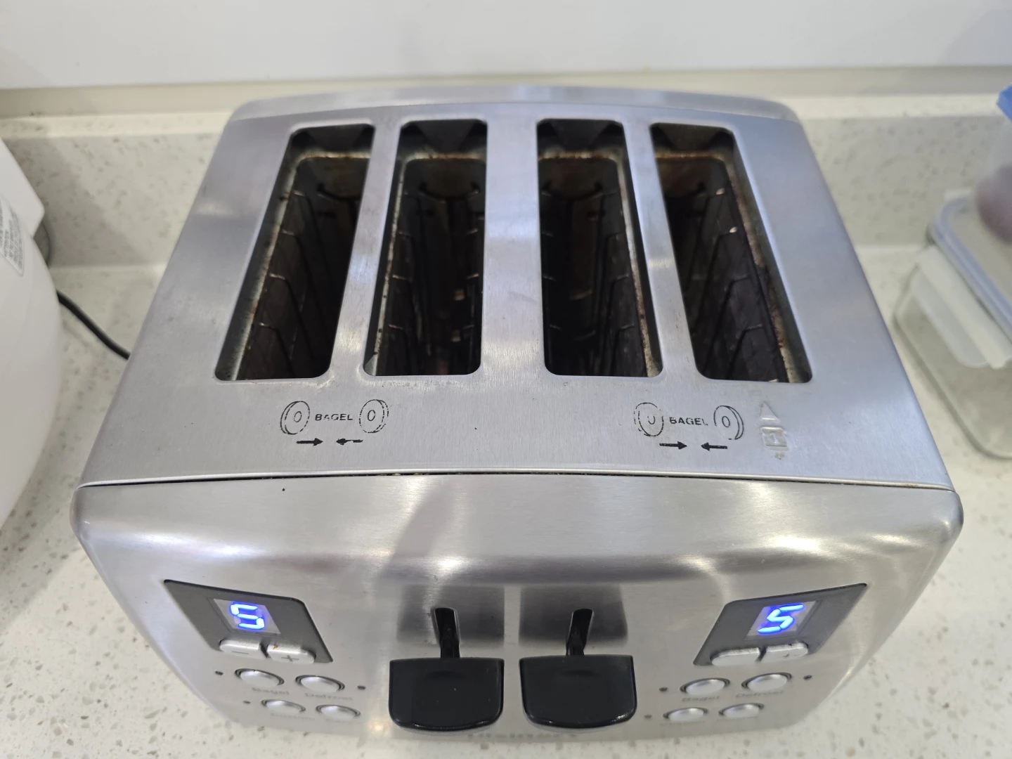 Everything works well. Sometimes the left handle won't come all the way up, but still functions properly - bread goes down and up just fine. Please check last photo.