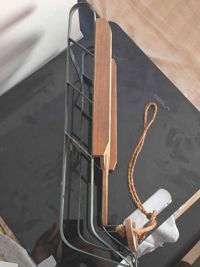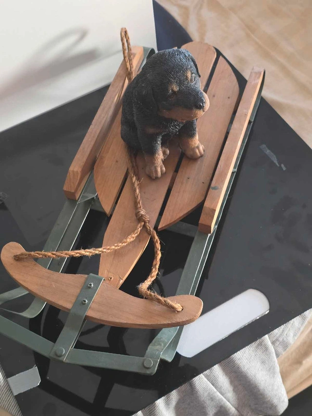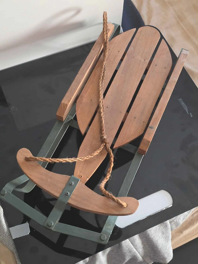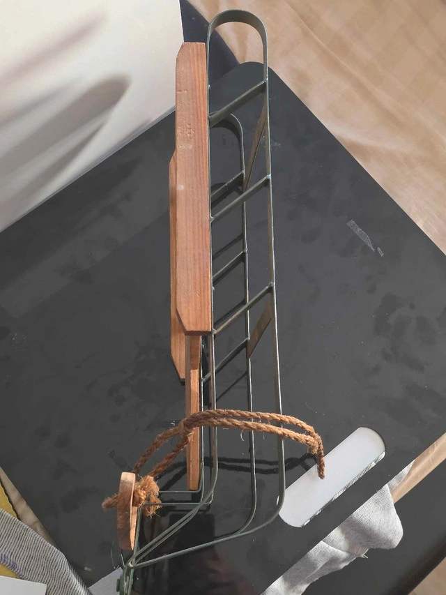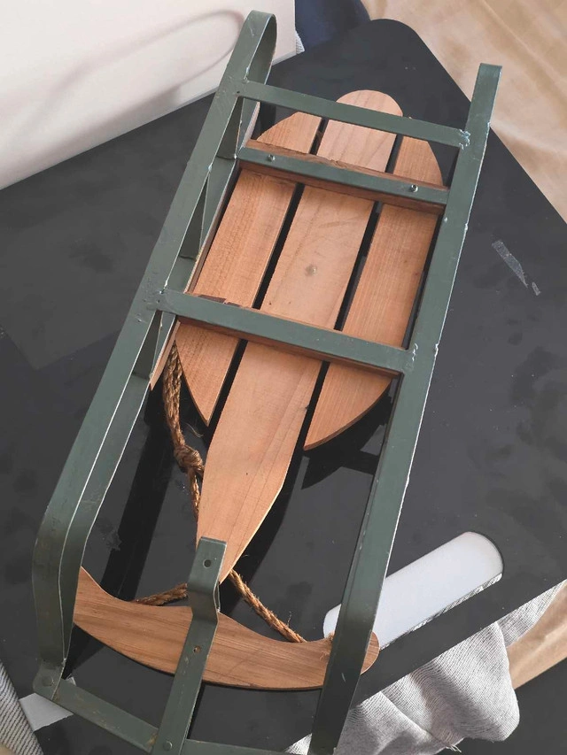 This charming, slightly weathered toy sled is a delightful piece for children's play or as a decorative item. The wooden and metal construction gives it a vintage feel, perfect for adding a touch of nostalgia to any room. It's in good condition for a vintage toy. Twenty inches by seven and a half inches. Looking for a unique touch to your home decor or a special toy? If the ad is up, it's still available!