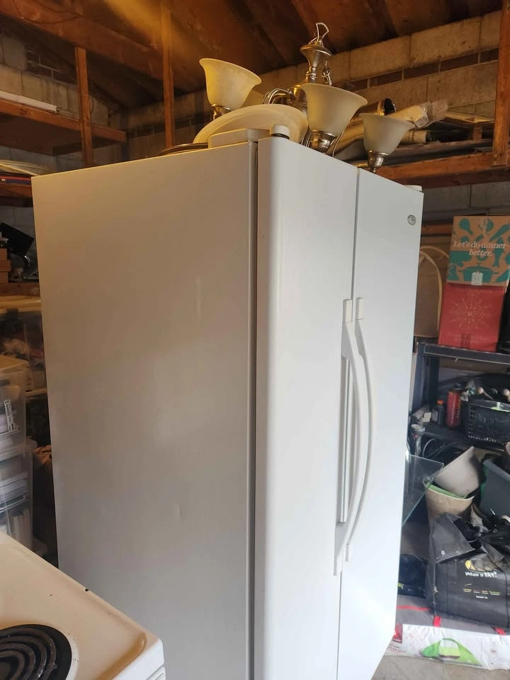 β’ Large double door refrigerator and freezer in white.