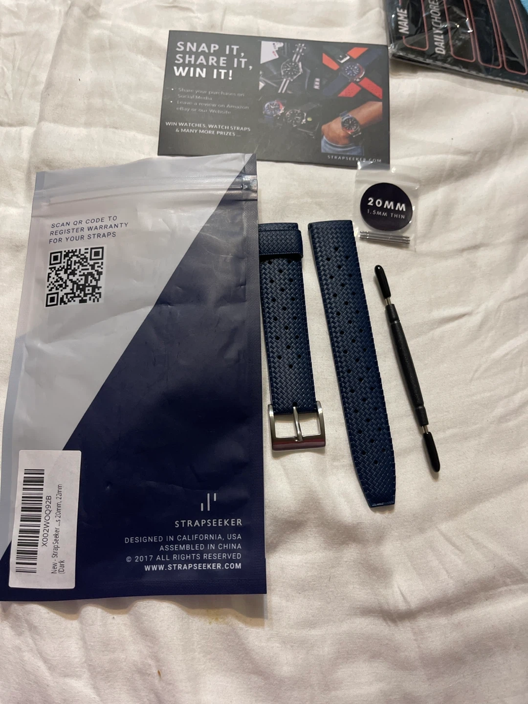 138Selling a StrapSeeker watch strap in dark blue. It's 20mm wide and includes the tool to change the strap. Perfect for giving your watch a new look! Pick up near Islington ave and /401/bergamot I accept Cash only. If the add is still up, it’s available. 🔹PLEASE CHECK OUT OUR OTHER LISTINGS TOO🔷