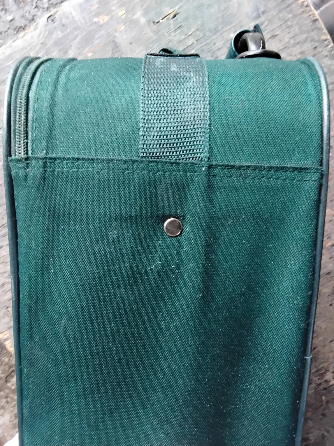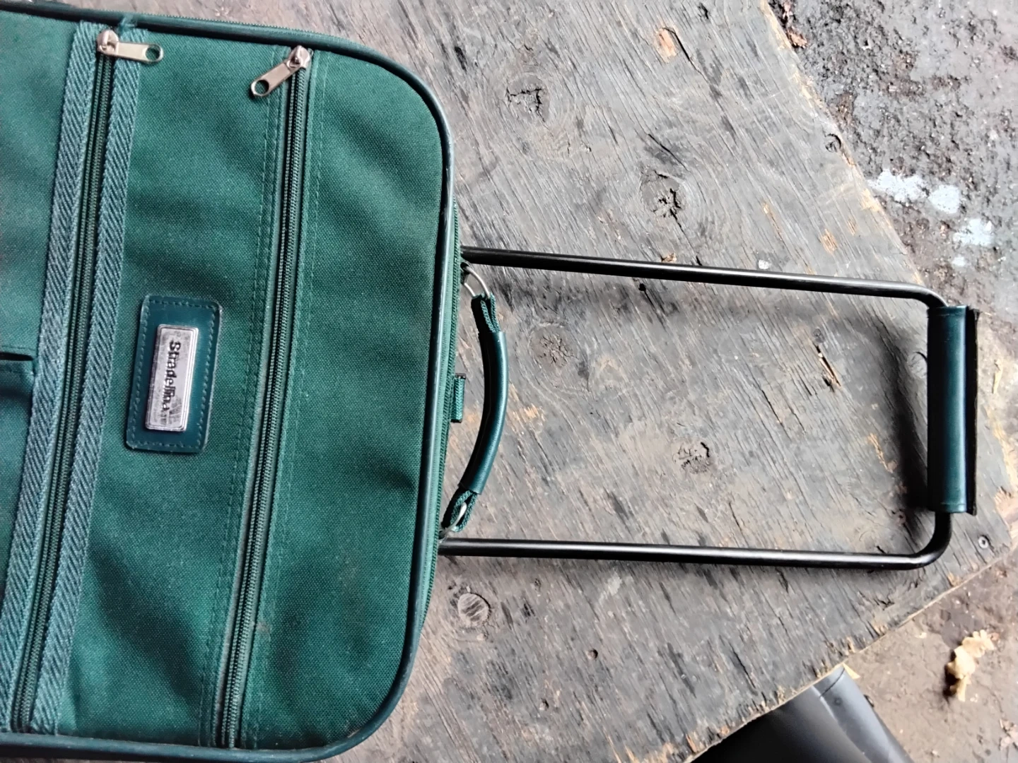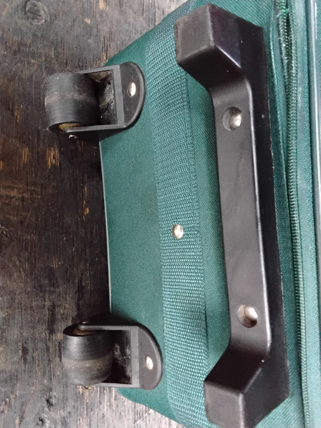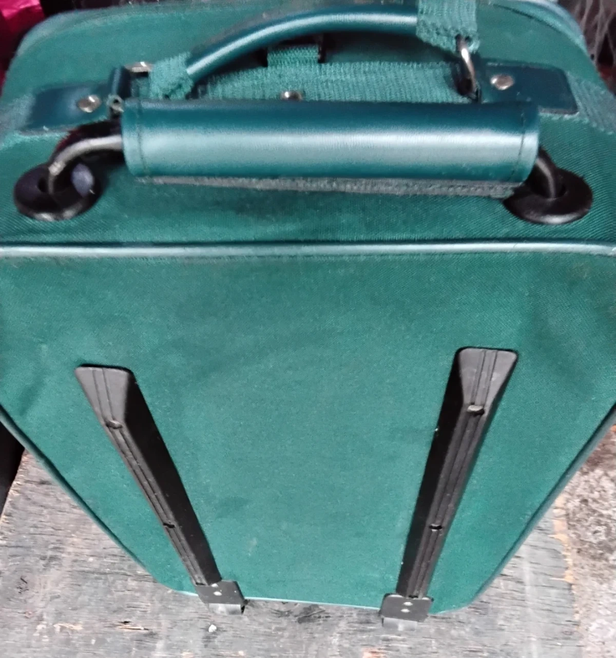 🤌This Stradellina suitcase is a reliable travel companion, ready for your next adventure! It's turqoise/teal/dark green hue is distinctive and appealing, and is fully functional. It's got a retractable handle and smooth-rolling wheels, making it easy to navigate through airports and train stations.