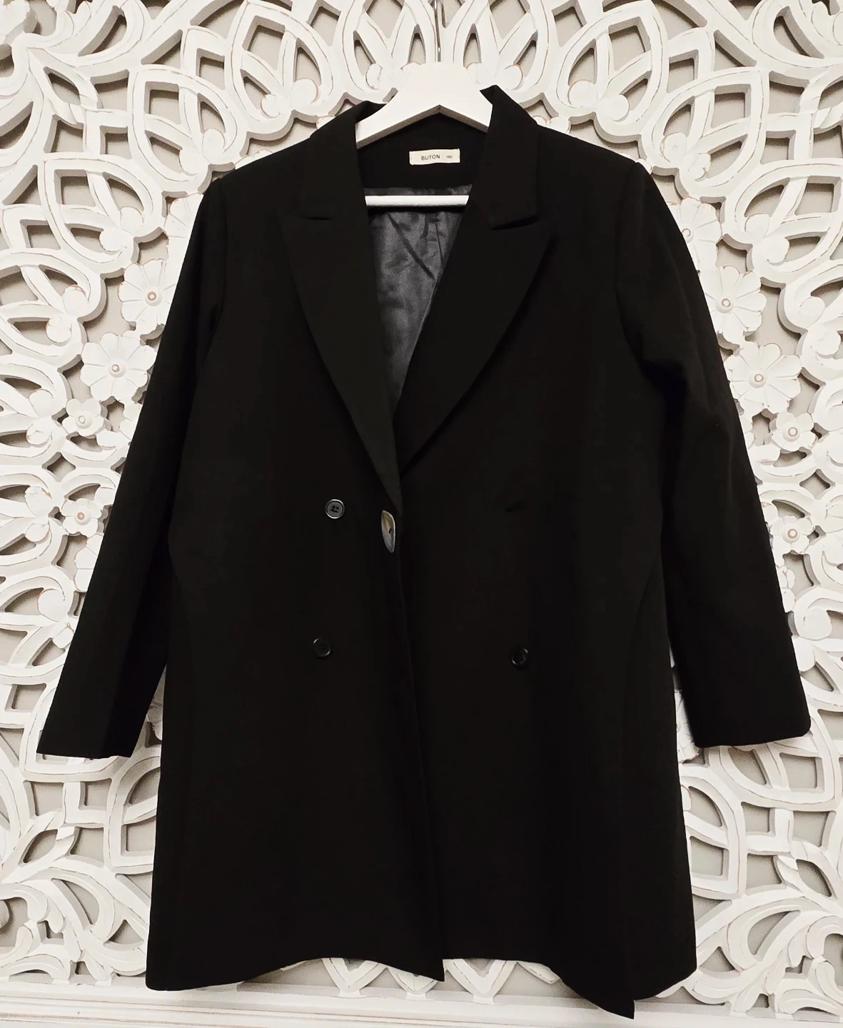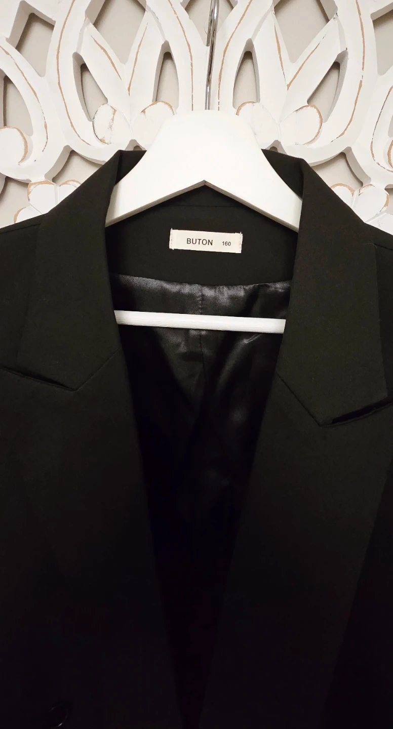 Selling a sleek black blazer from Buton! It's a size 160 and in great condition. Perfect for adding a touch of sophistication to any outfit