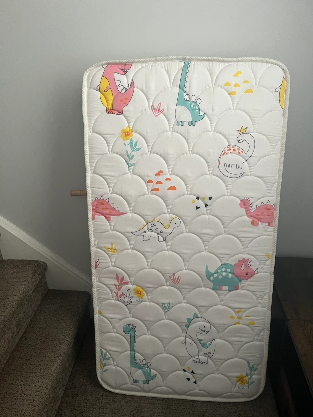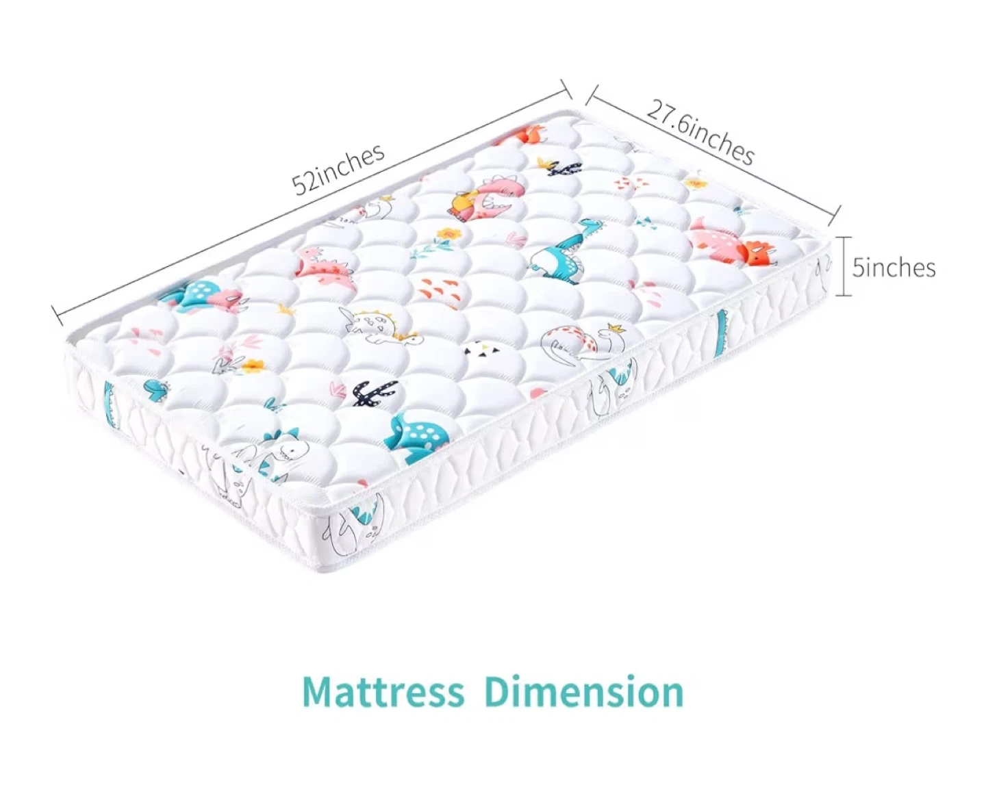 177Selling a gently used crib mattress with a cute dinosaur print! It's in excellent condition and measures approximately 52 x 27.6 x 5 inches. Perfect for your little one's crib!