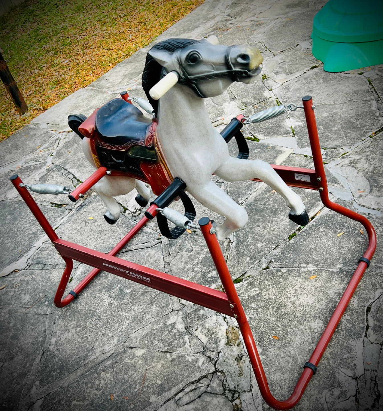 Here's a classic Hedstrom spring rocking horse! It's in good condition and ready for a new home. Perfect for kids who love horses and enjoy a bit of rocking fun. Supports up to 40 kg, with sturdy springs on all four sides for a realistic and exciting horse-riding experience. From a clean, smoke-free and pet-free home environment.