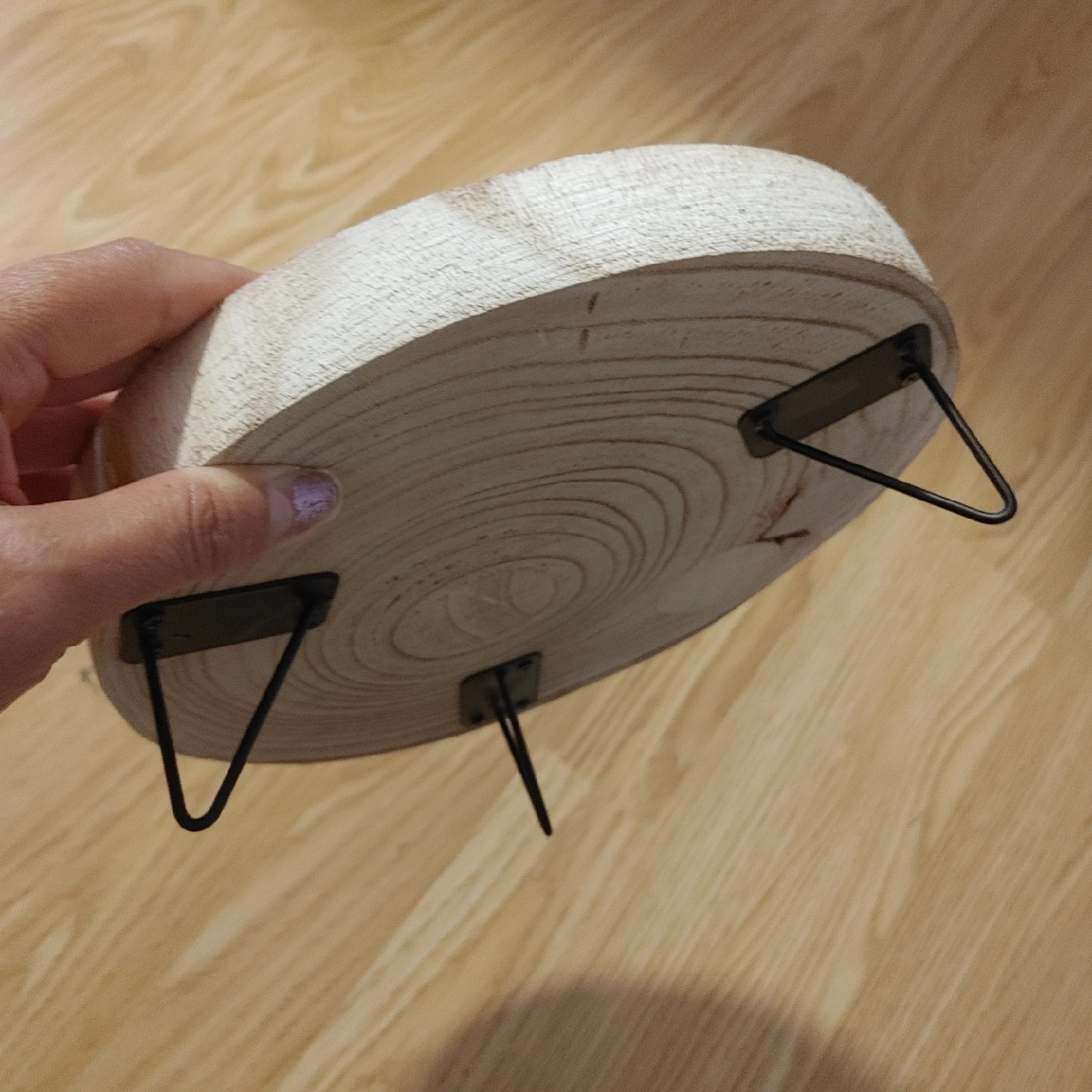 63Selling a cute little wood slice stand It's got a natural wood finish and sturdy metal legs. Perfect for adding a rustic touch to any room