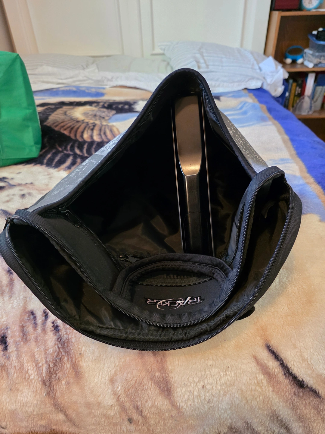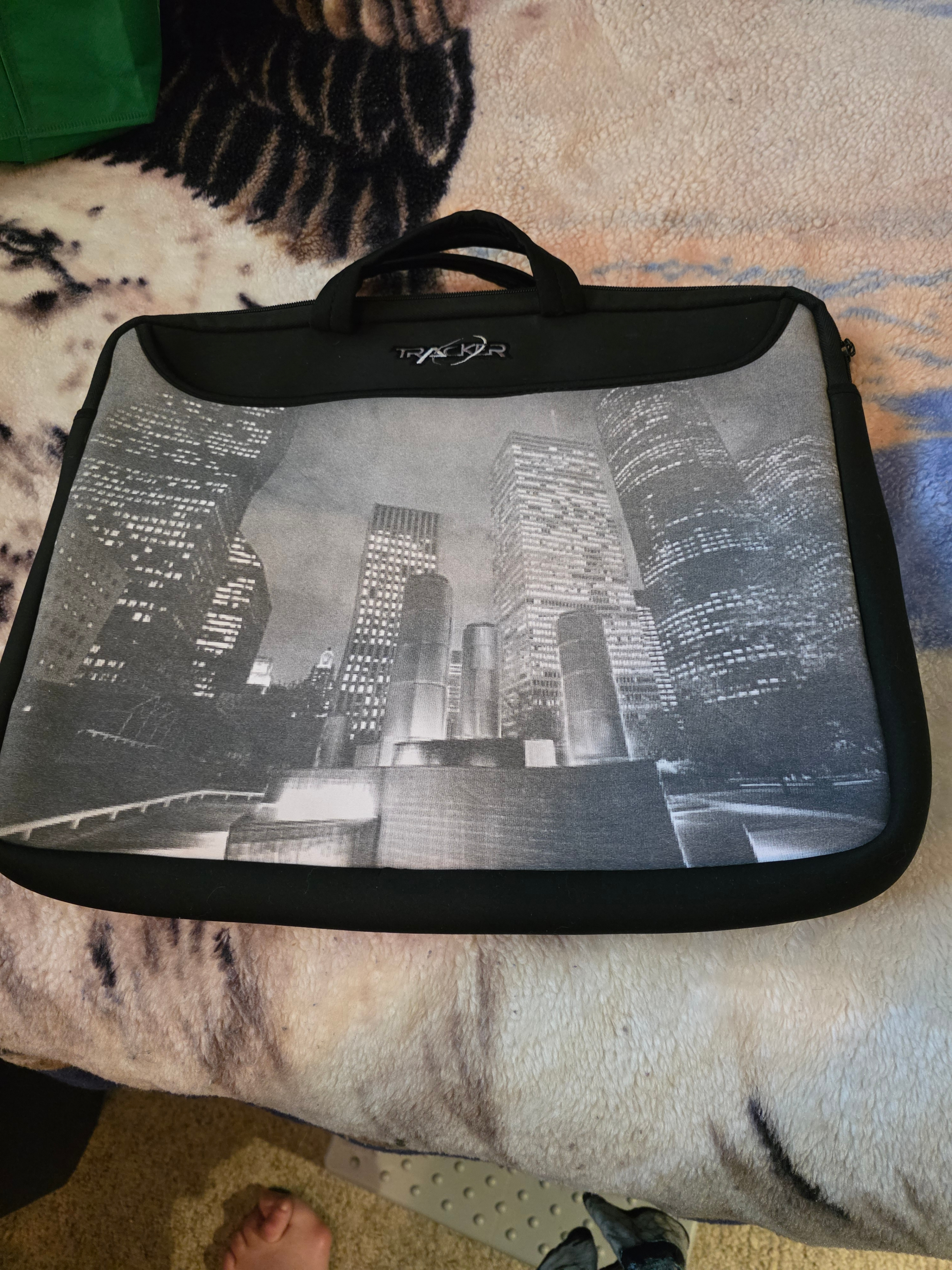 Selling a laptop sleeve in black with a Cityscape design. It's in great condition and perfect for protecting your laptop while on the go.