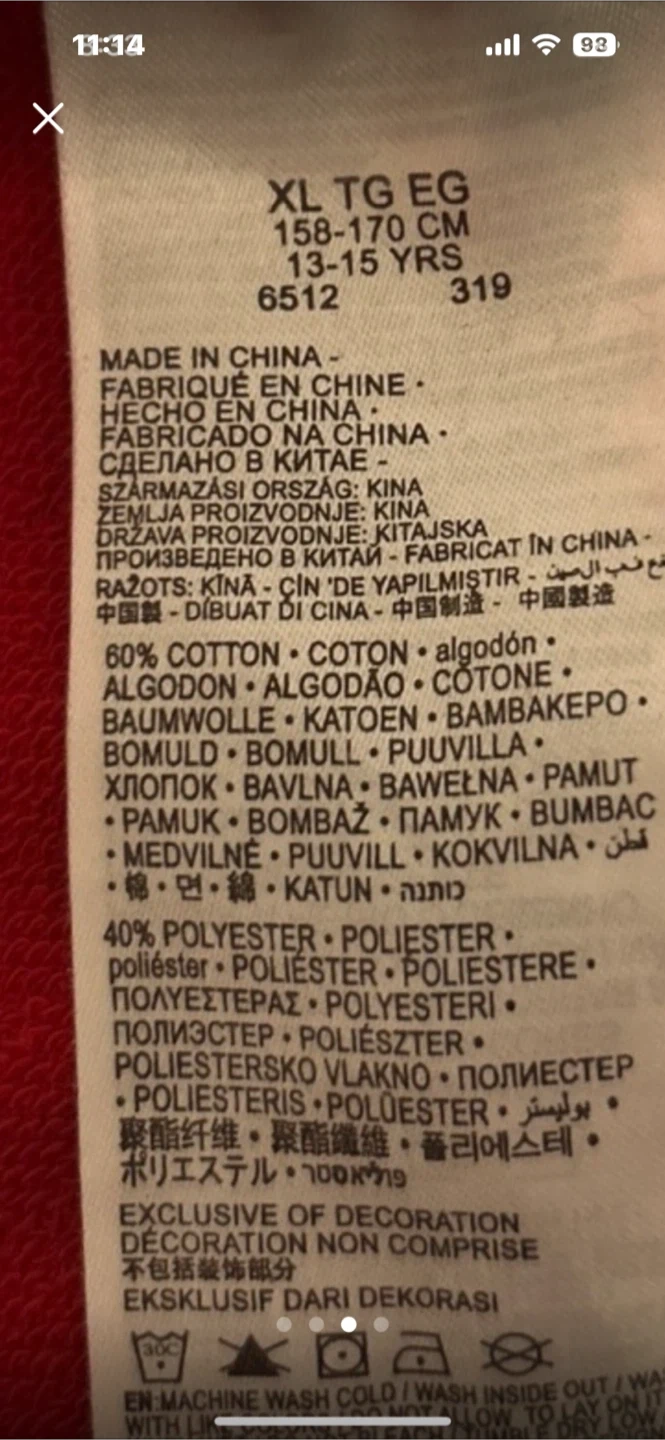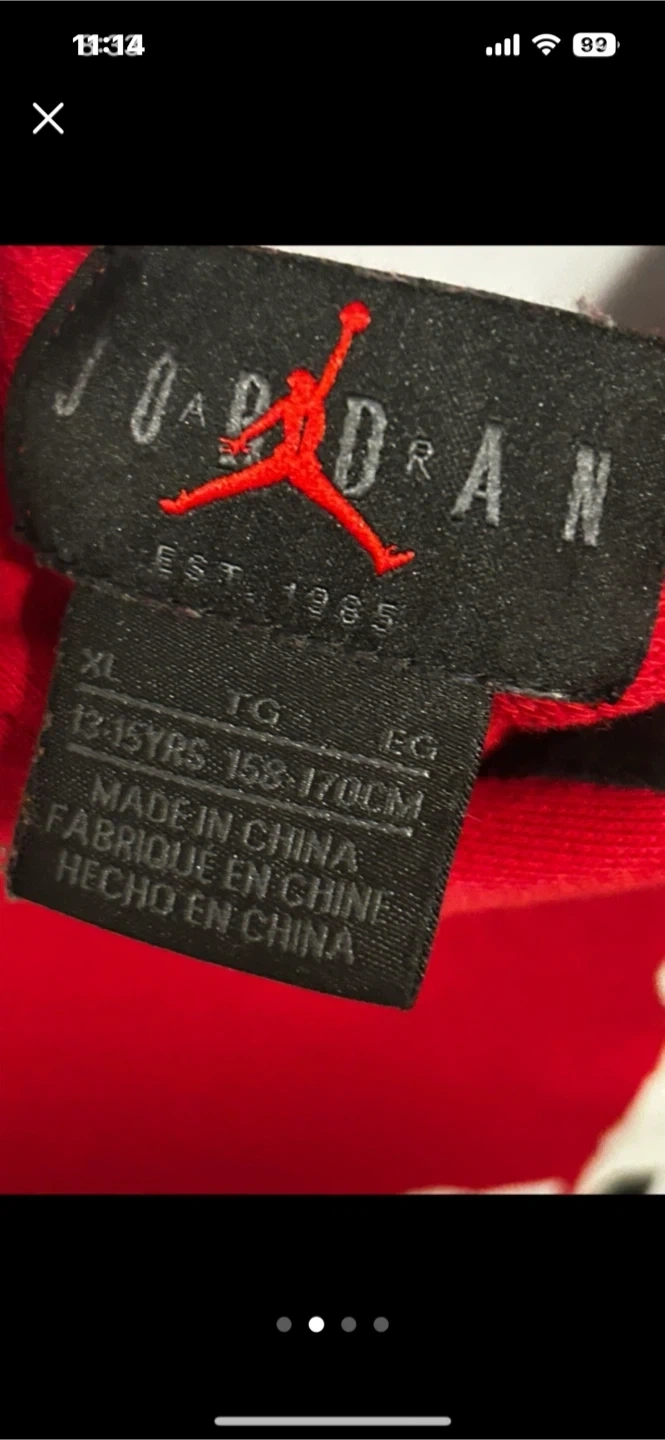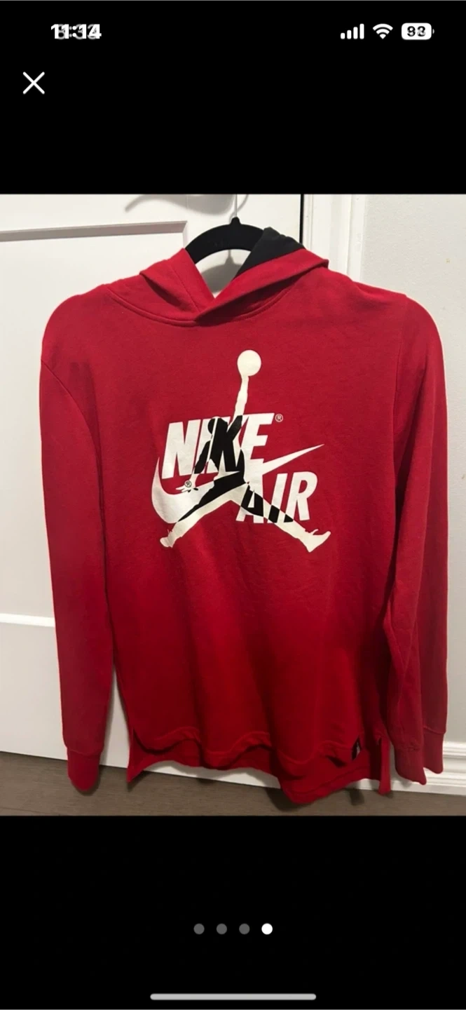 414Selling a Nike Air Jordan hoodie in red. It's a size XL, suitable for ages 13-15 years (158-170 cm). The hoodie is made of 60% cotton and 40% polyester.