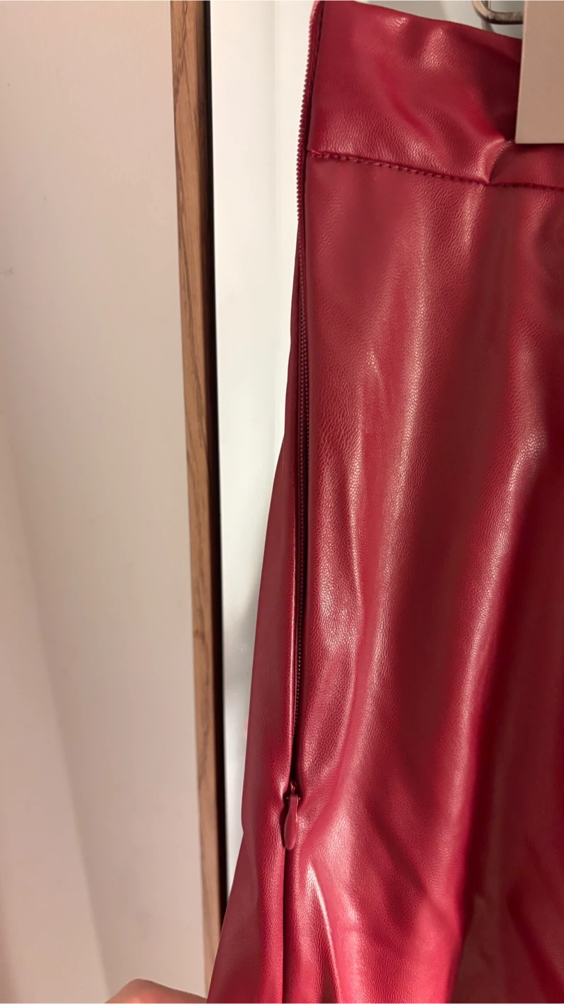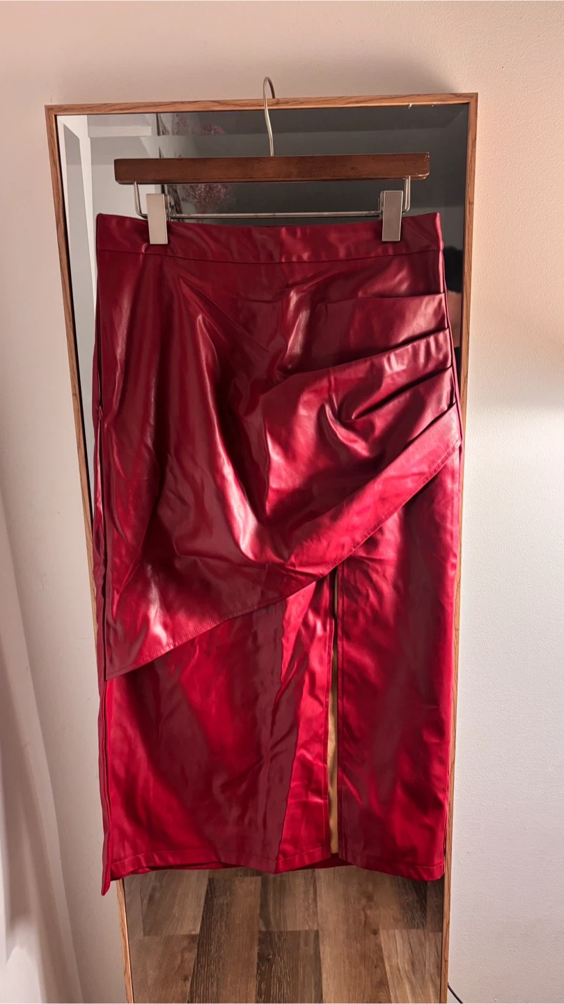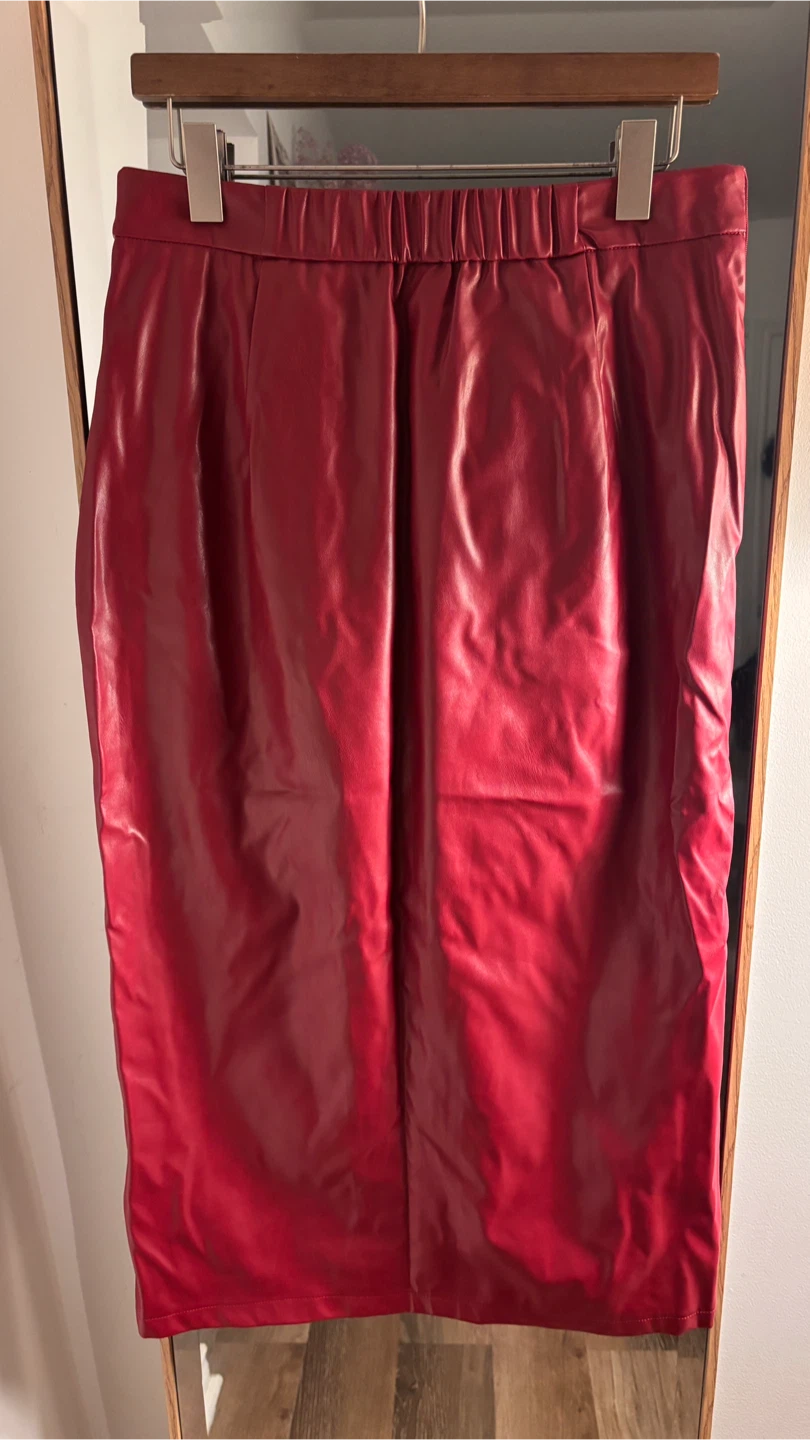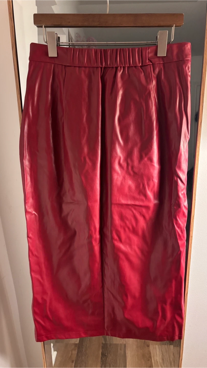 Selling stylish red long faux leather skirt! Size L (US 8/10), however it perfectly suits for M. Perfect for fall