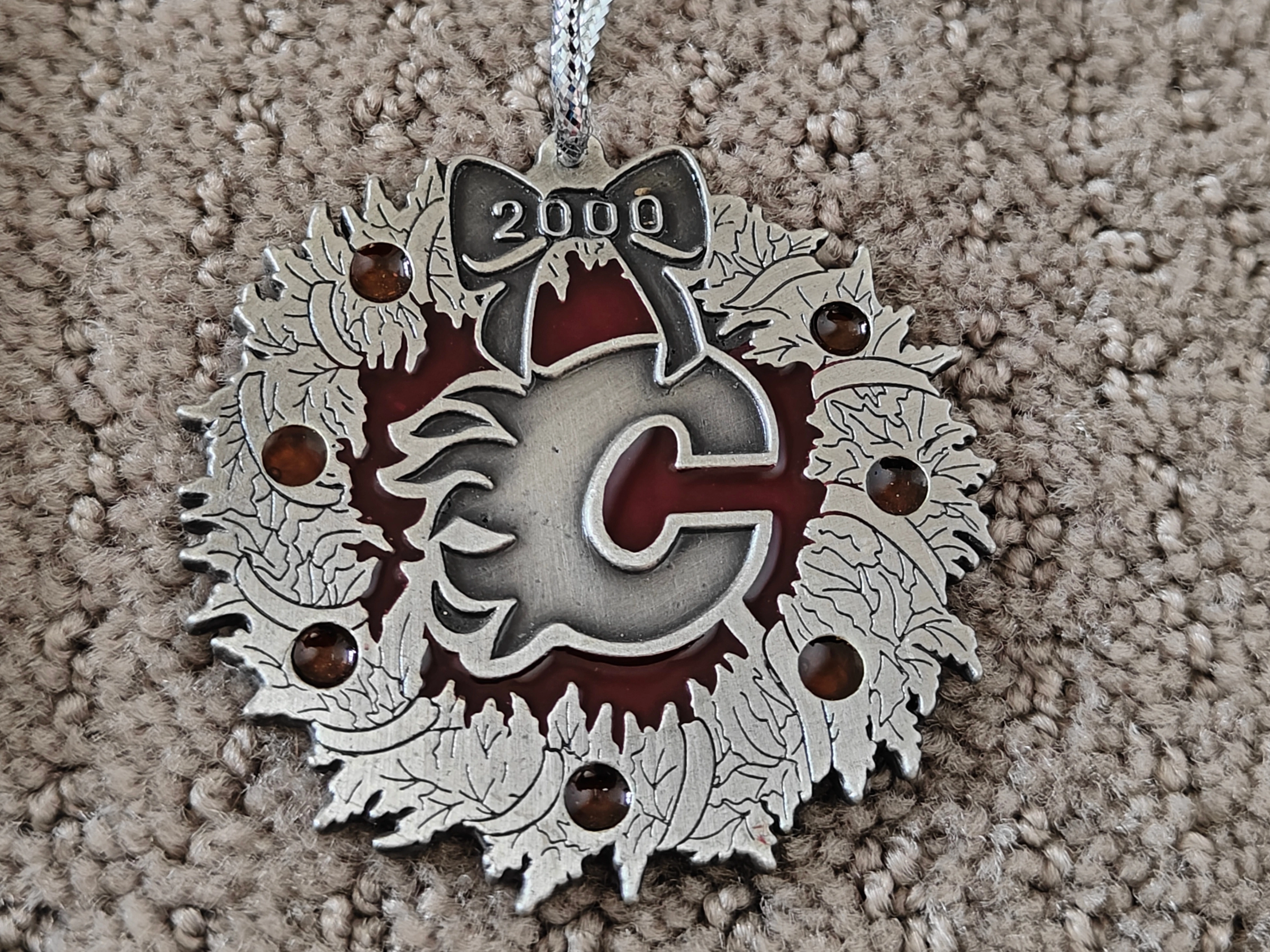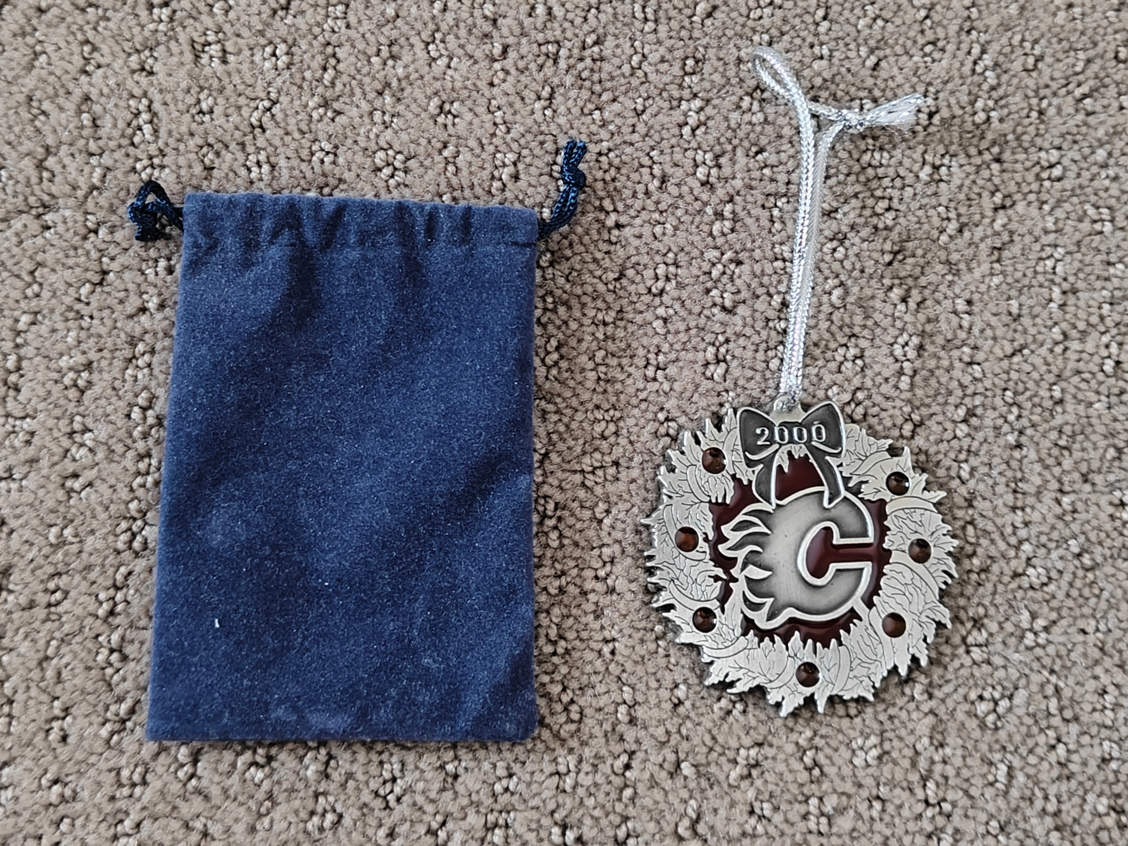 174I am selling 2000 Calgary Flames - NHL Hockey Christmas Holiday Ornament with Velvet Storage Bag in like-new condition. Metal Christmas tree Wreath decoration ornament with a silver cord hanger. This Calgary Flames ornament was not available to the public, just for staff members. Ornaments Dimensions: * Max Diameter: 2-1/2" * Thickness: 3 mm Comes from a pet and smoke-free environment. Pickup in Mount Pleasant (NW Calgary)