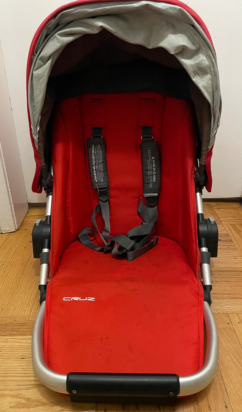 Selling a used UPPAbaby Cruz stroller seat in red. It's in good condition and ready for a new home! It's a reliable and comfortable ride for your little one