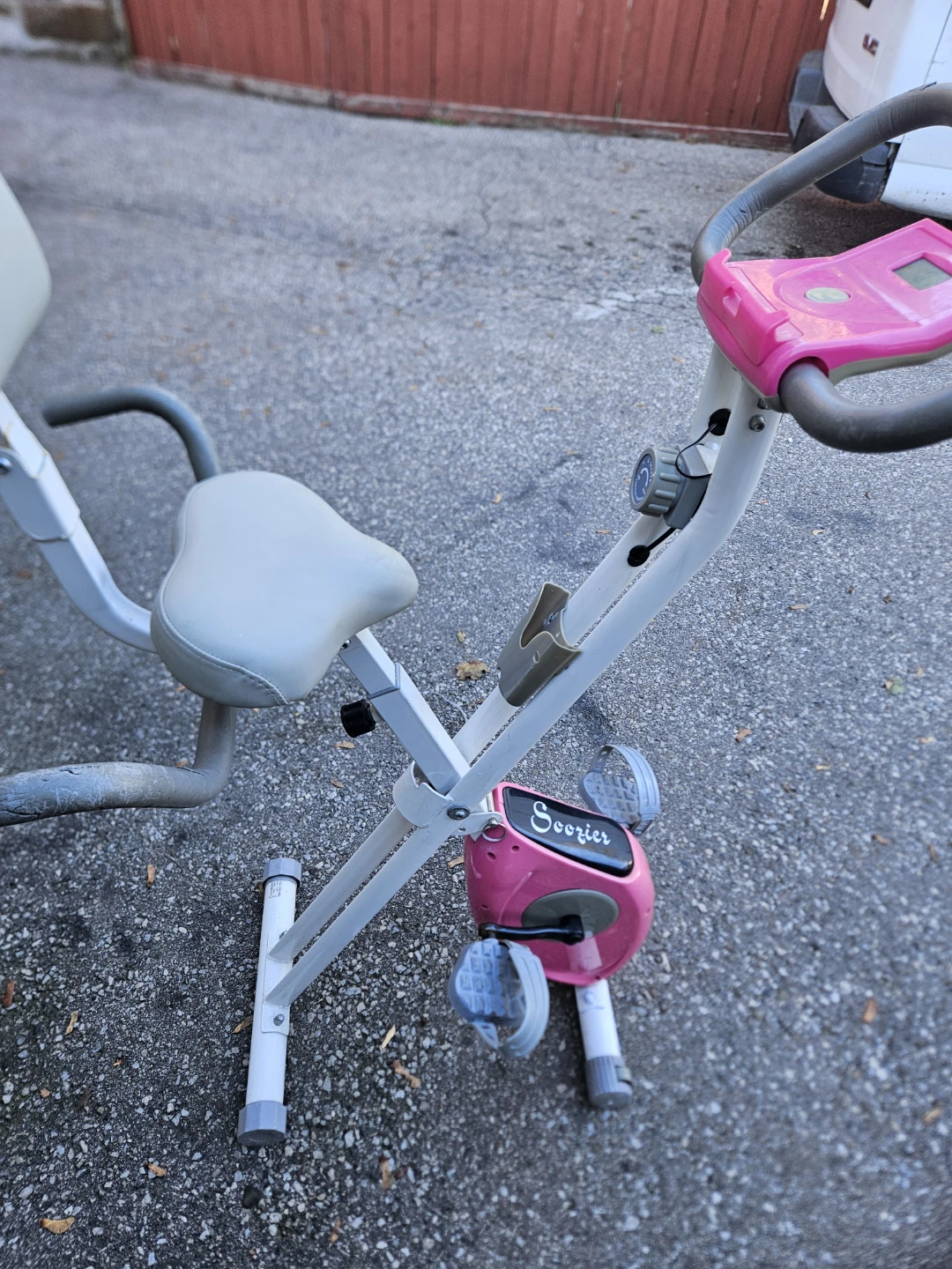 Selling a Soozier exercise bike in pink and white! It's perfect for getting a workout in at home. The bike features a comfortable seat and adjustable resistance, so you can customize your workout to your fitness level. It also has a display that shows your stats, like calories burned. Great for small spaces!