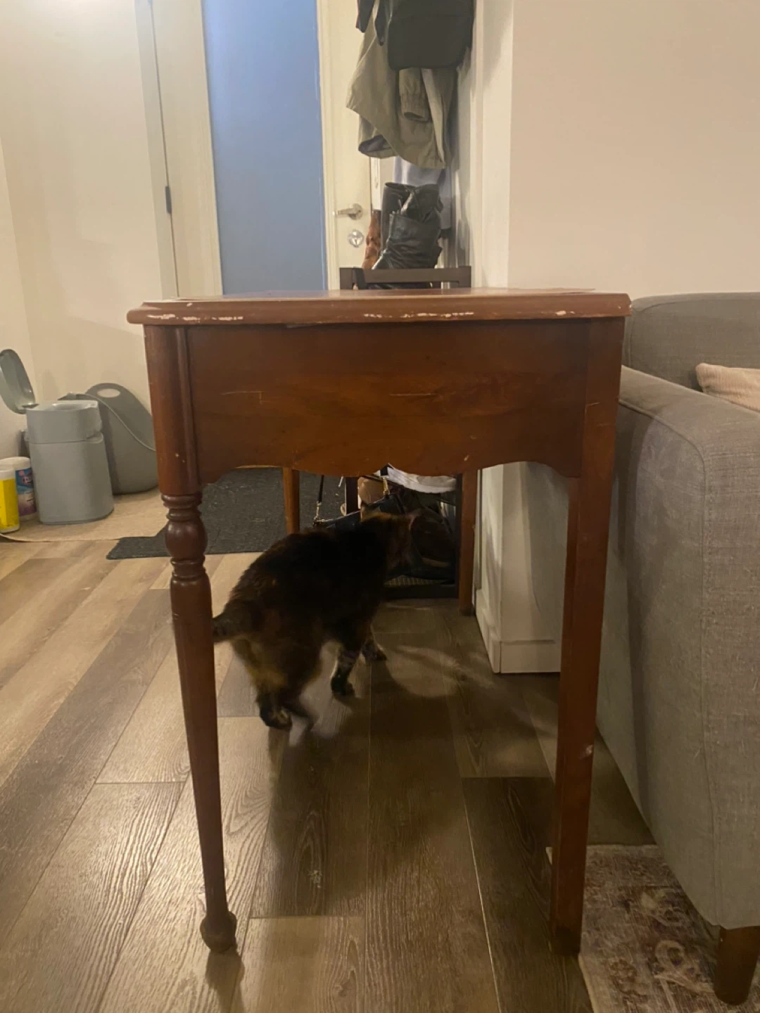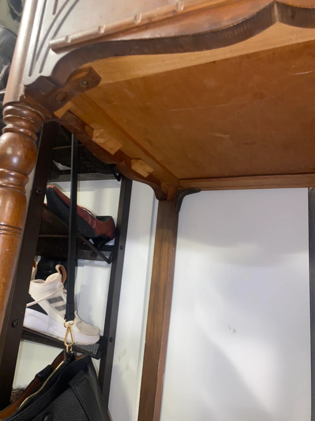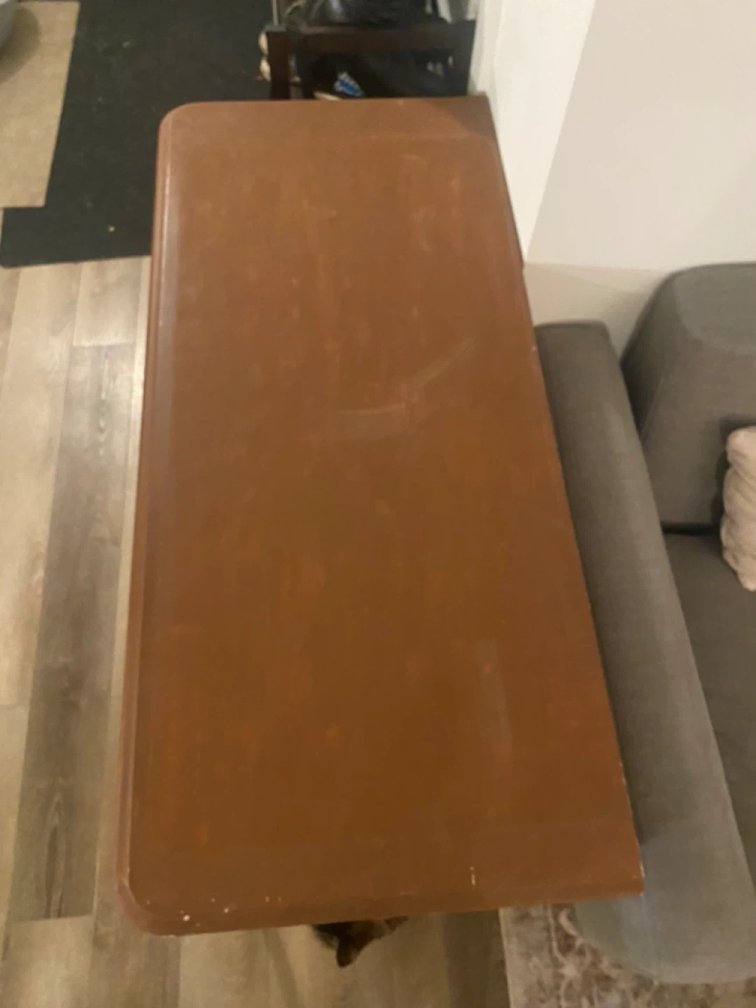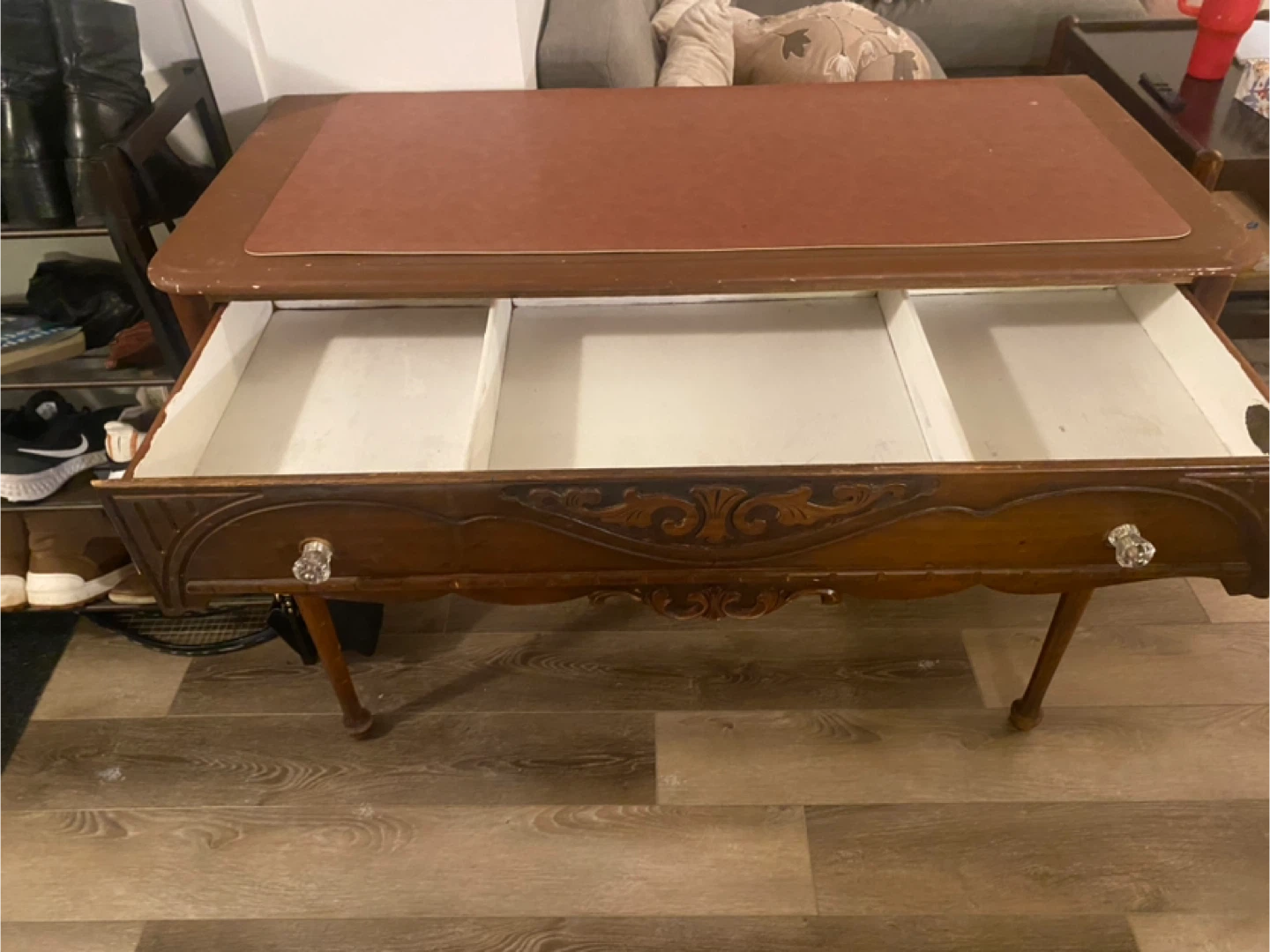 Selling a Gibbard solid walnut desk. Got it in a furniture bundle with my apartment, unfortunately someone painted the table top and in the drawers. Feels like acrylic paint. Has lots of wear on the legs. Selling because I got a bigger desk. Pickup only!