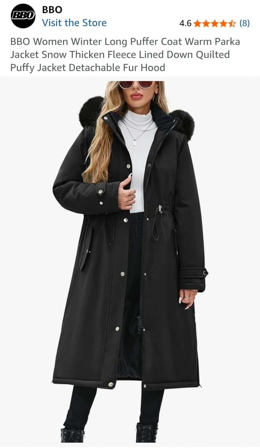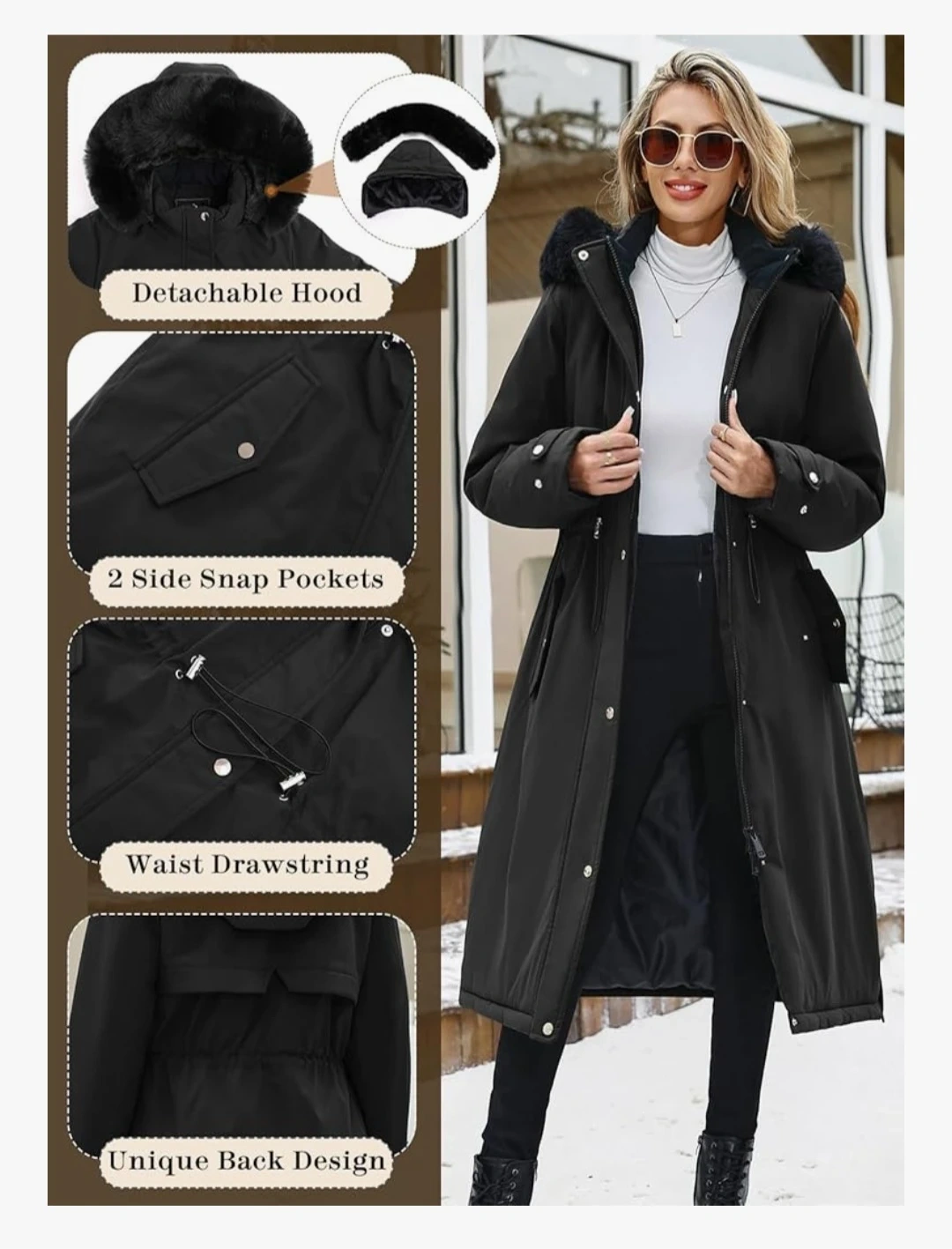 Women's Winter Long Puffer Coat - Black (Amazon)πŸ₯•