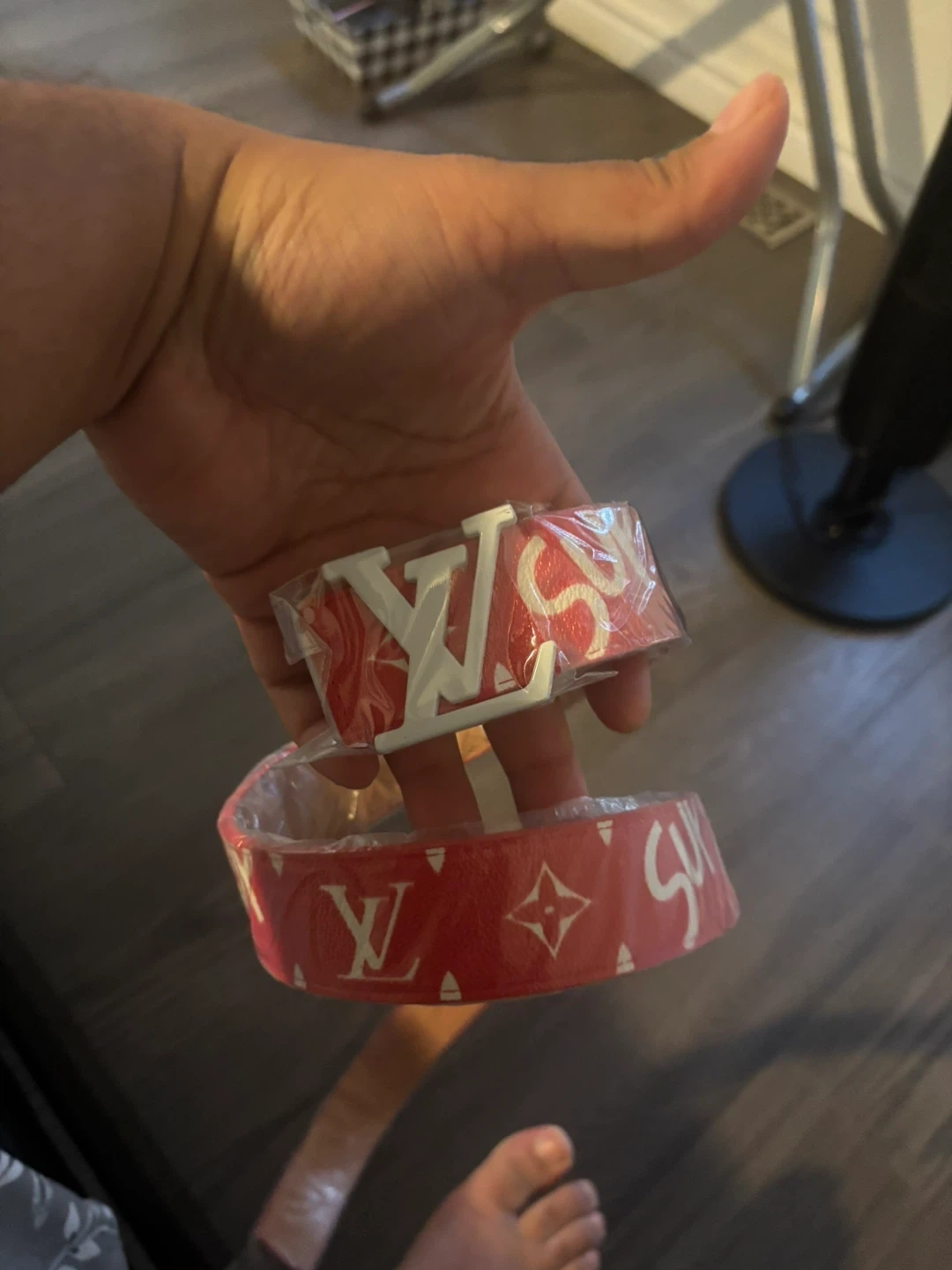 Selling a stylish Louis Vuitton x Supreme belt in red. It comes with the original box and packaging. This belt is a statement piece that will add a touch of luxury to any outfit