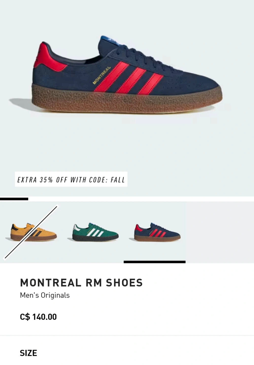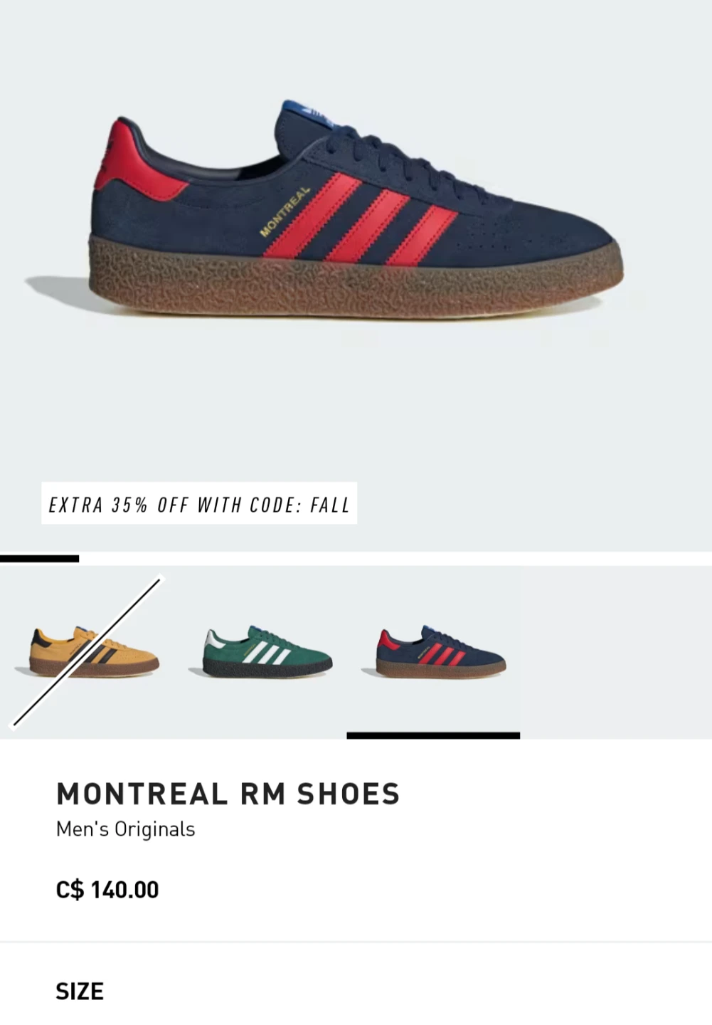 The adidas Montreal 76 RM sneaker is a “re-master” of the original 1976 German Olympic football team’s shoe. The RM maintains almost all the details from the original post-game leisure shoe, but lowers the distinctive sole, removing the rubber extension to the heel. The sneaker is known for its suede upper, perforated toe box, leather 3-Stripes, gold foil “Montreal 76” wordmark, and visible stitching – all of which still nod to football heritage on adidas’ Montreal 76 RM sneaker.