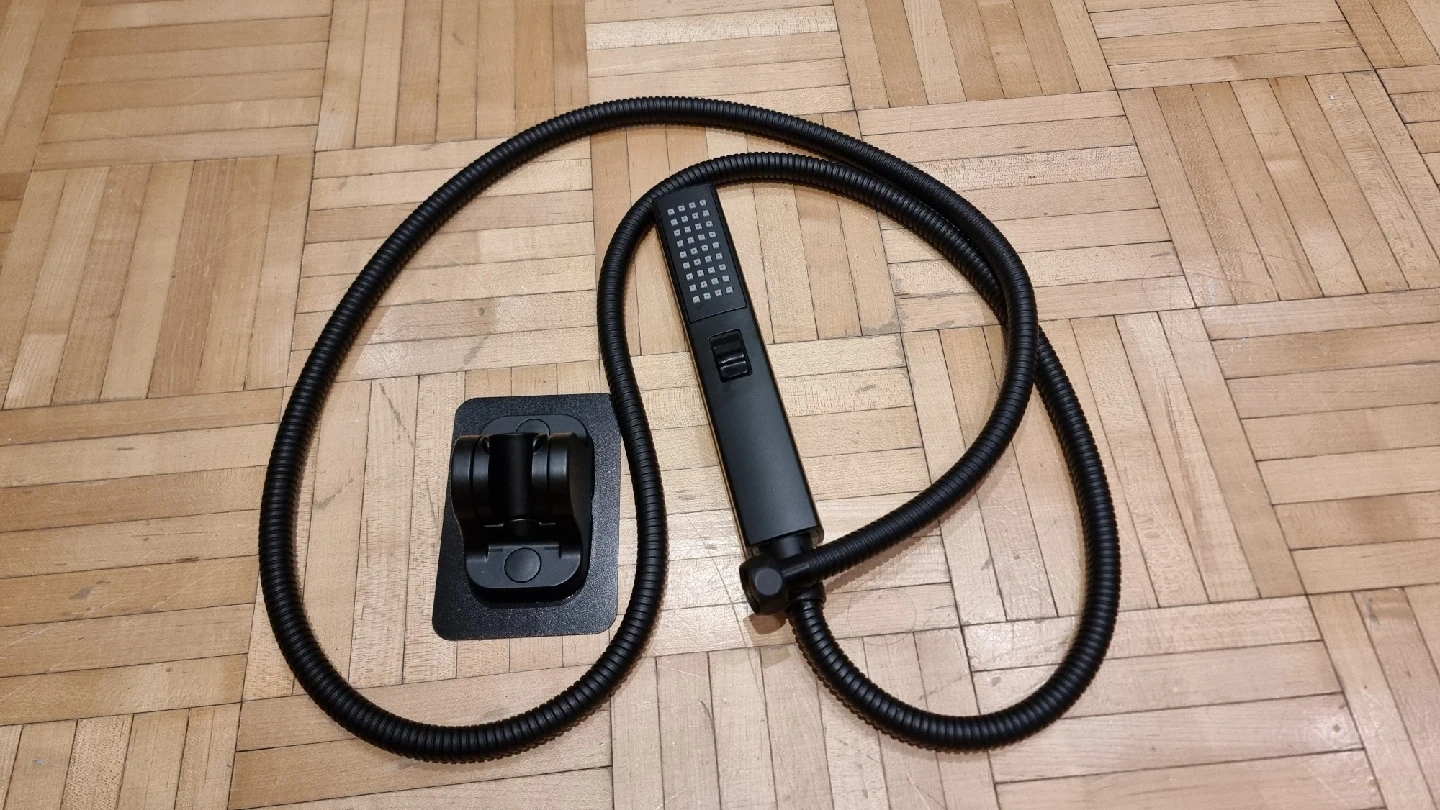 Selling a handheld shower head in matte black! It comes with the hose and mounting bracket. I have not used it as it wasn't a good fit for my bathroom.
