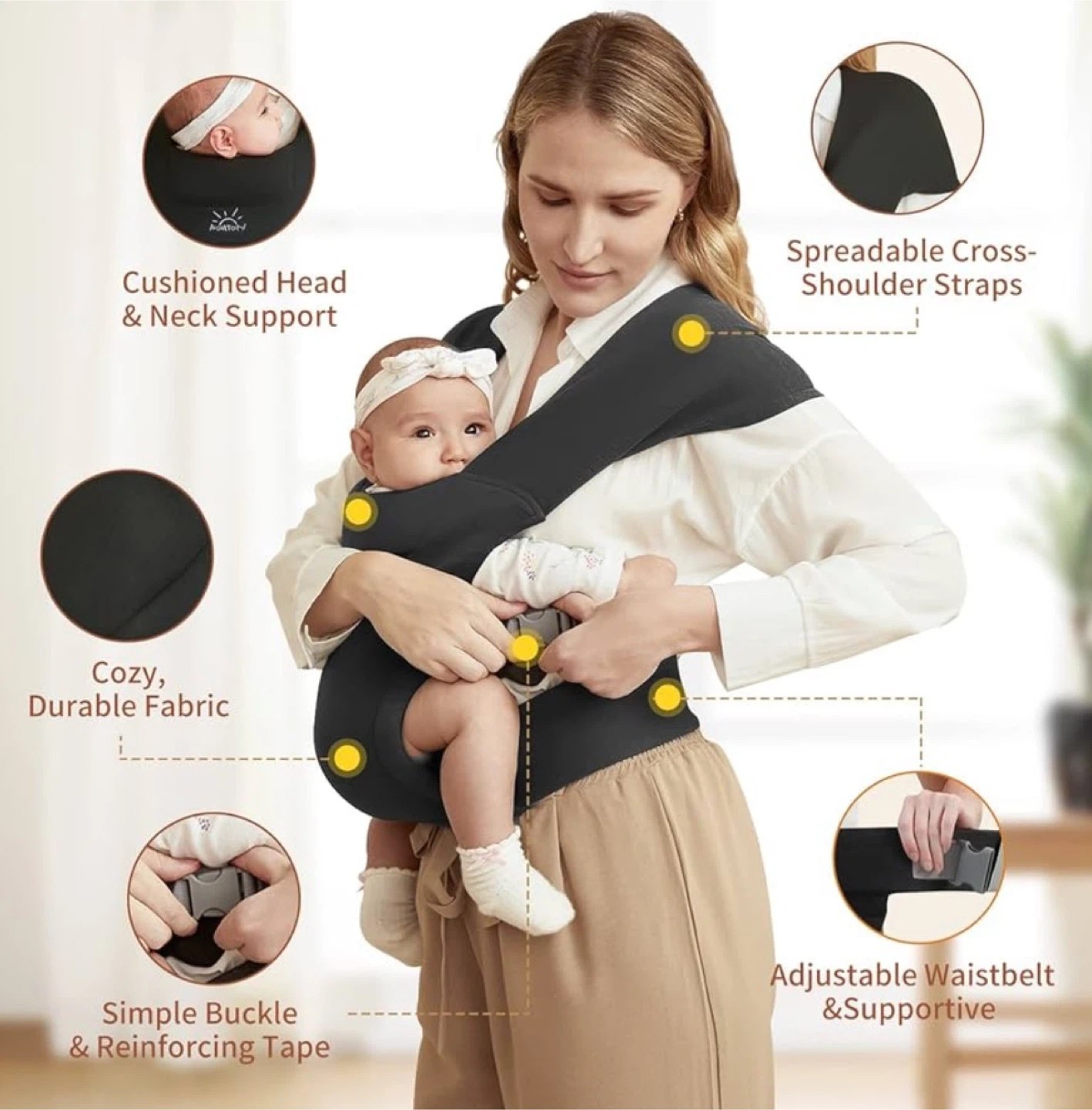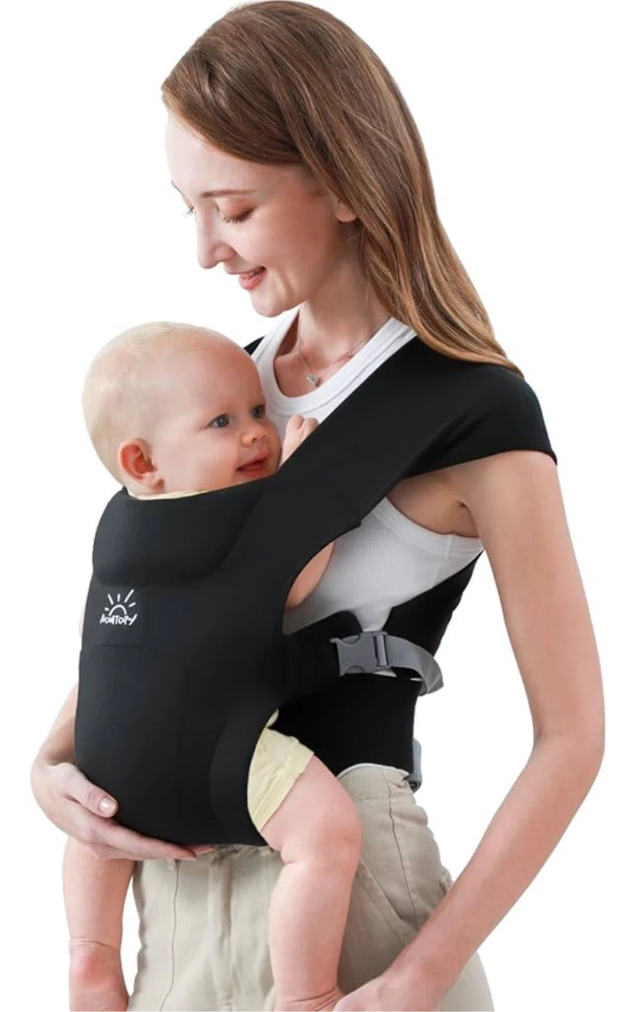 This MOMTORY baby carrier offers the comfort of a wrap with the convenience of quick buckles β perfect for newborns and busy parents!