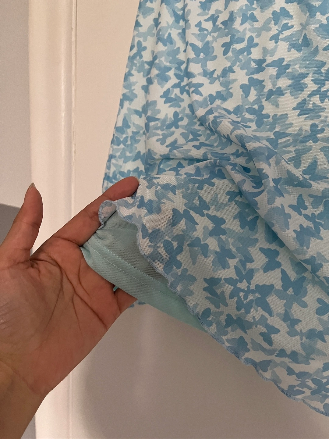 Cute SHEIN mini skirt with a butterfly print! It's a size XS and in great condition. Double lined with mesh layer on top. Perfect for adding a bit of fun to your wardrobe!