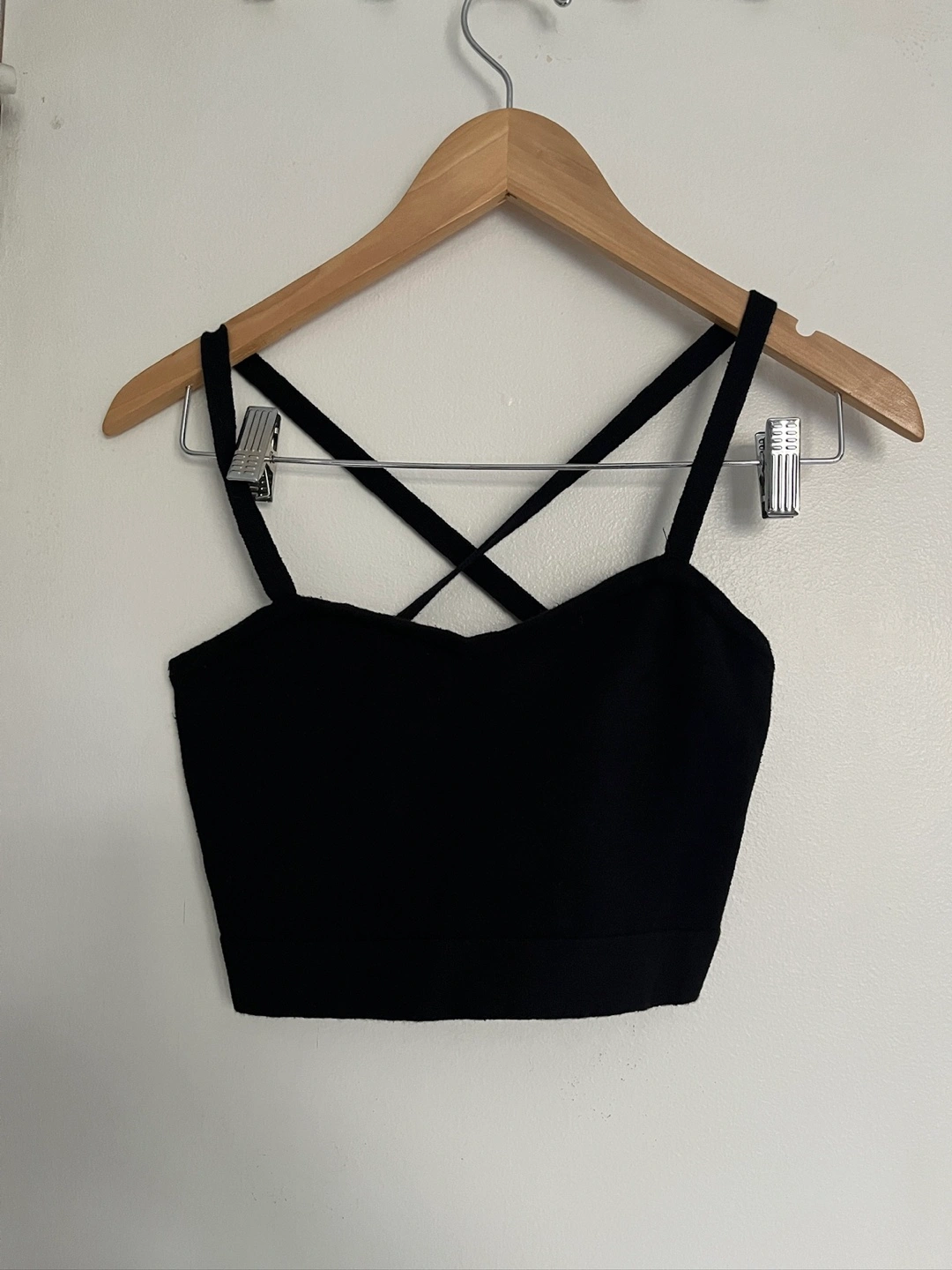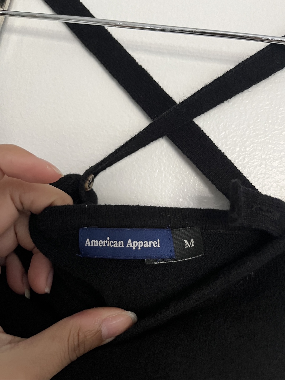 Selling a cute black criss-cross tank from American Apparel! It's a size medium and in great condition. Nice knit material and has adjustable buttons