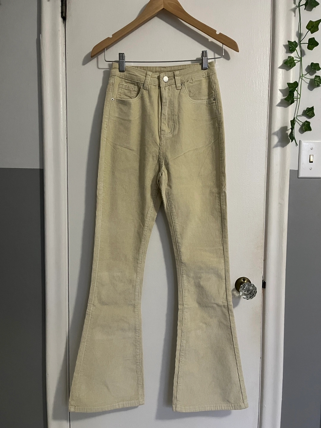 Selling a pair of SHEIN corduroy flare pants in size XS! They're a lovely cream colour and in great condition. Perfect for adding a bit of retro style to your wardrobe