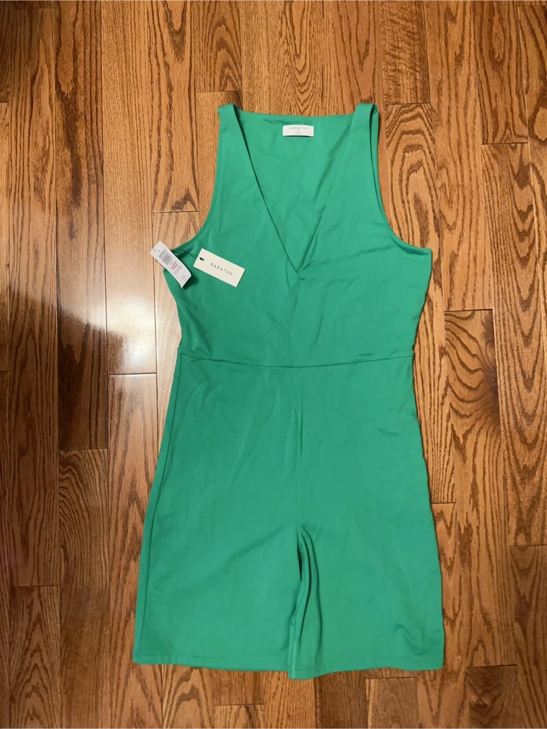 Selling a brand new Babaton Contour Check Romper in green, size XL. It's in perfect condition and ready for a new home!